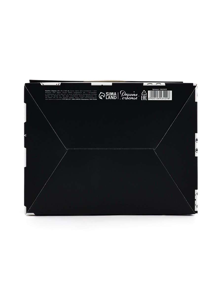 Размер упаковки: 34.5 x 39.5 x 0.2 см. Цвет: Чёрный Тематика: Приколы Тематика праздника: Универсальная тематика Окошко: Нет Высота, см: 12.5 Длина, см: 20 Ширина, см: 15 Крышка-дно: Нет Плотность, г/?2: 250 Размер: Средний (18-24 см) см Форма: Прямоугольная Вид: Интерактивные tnved: 4819200000 | ||