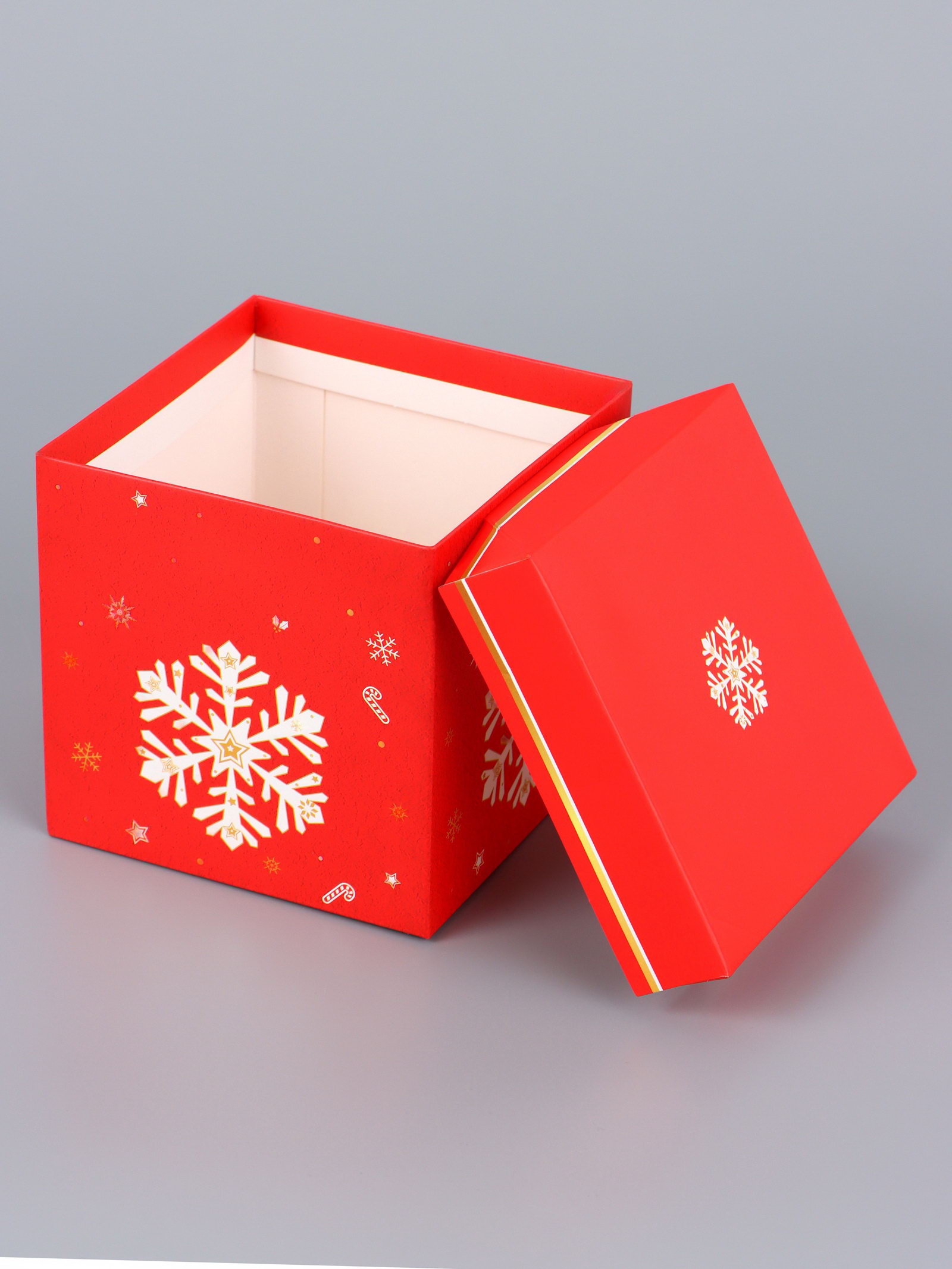 Коробка подарочная, новогодняя, самосборная "Снежинка" 10x10x10 см, 10x10x10 см., UPAK LAND, Китай