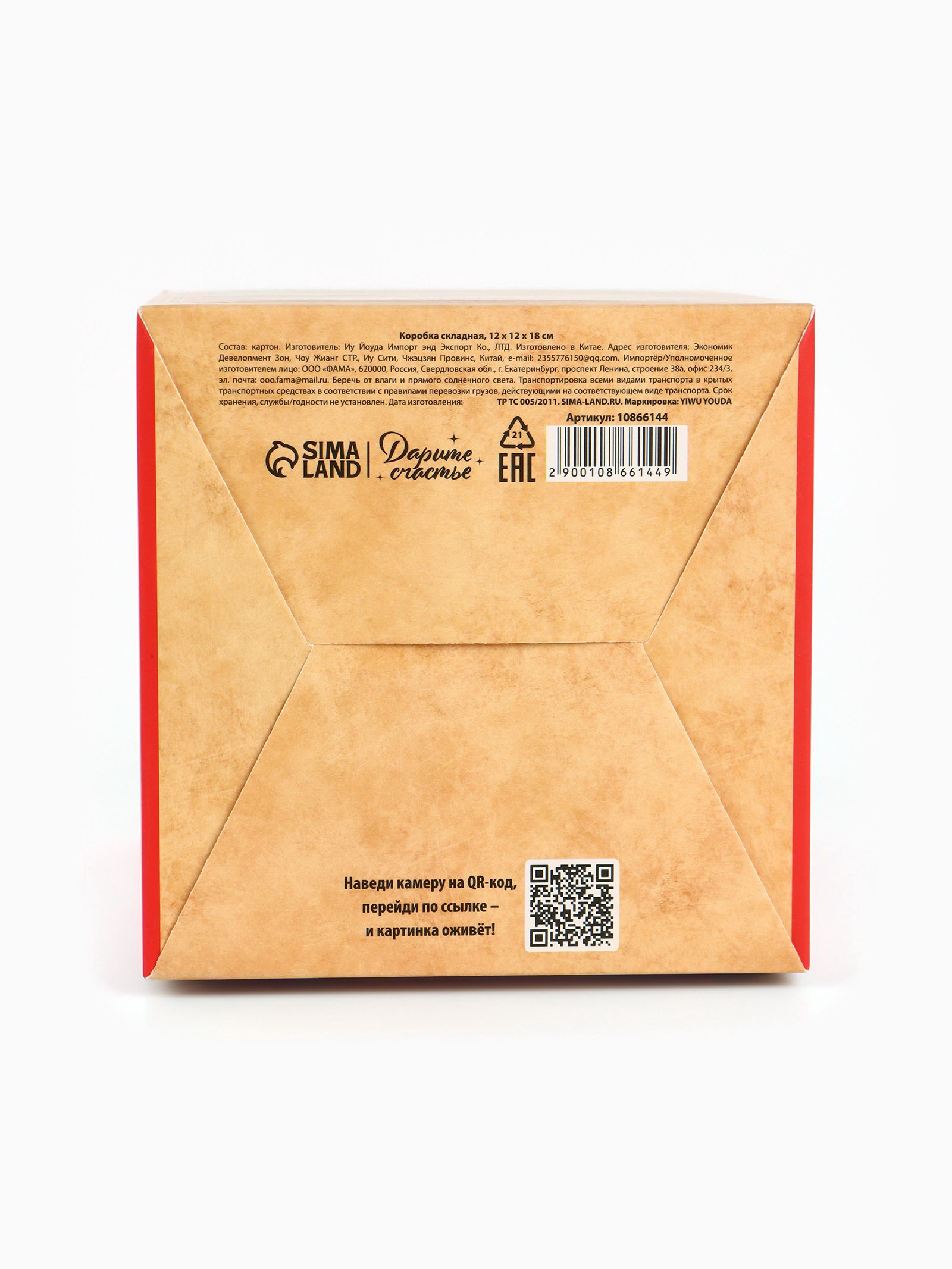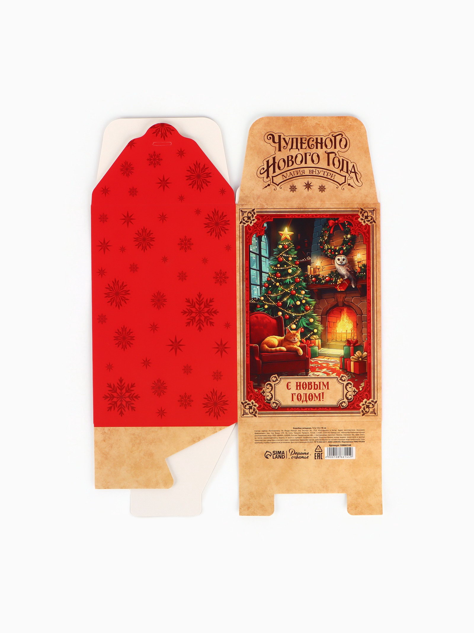 Коробка подарочная складная "С Новым годом", 12 x 18 x 12 см, 12x12x18 см., Дарите Счастье, Китай