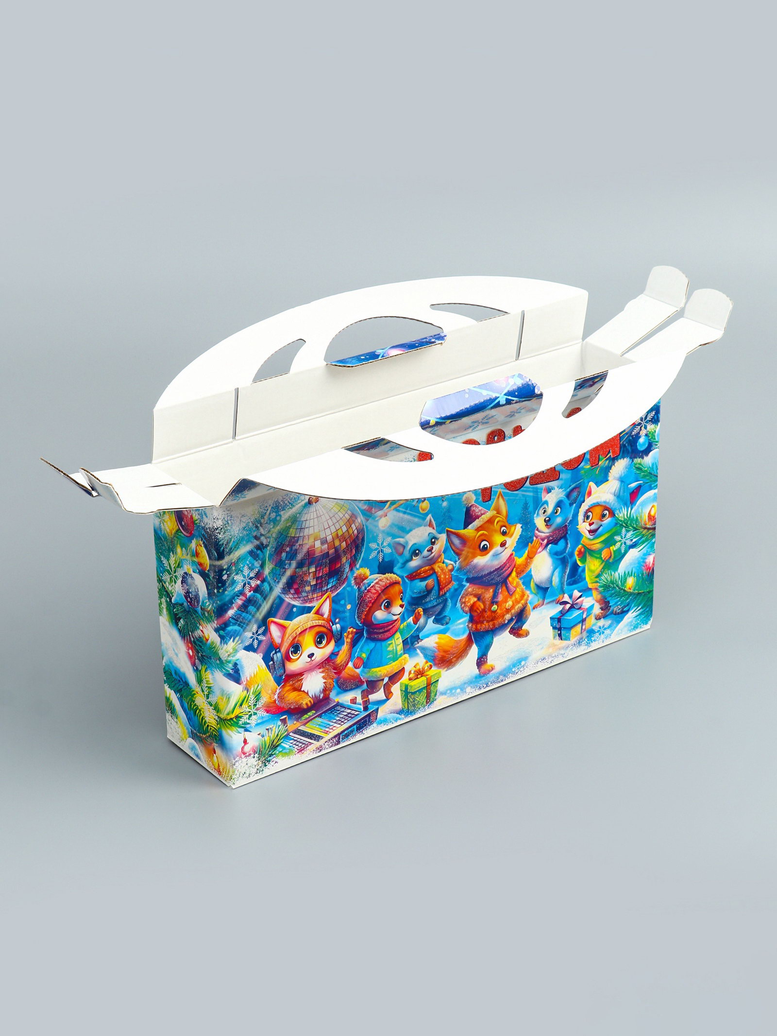 Подарочная новогодняя коробка "Лесное диско", Портфель макси широкий, 37x8x20.2 см, Россия
