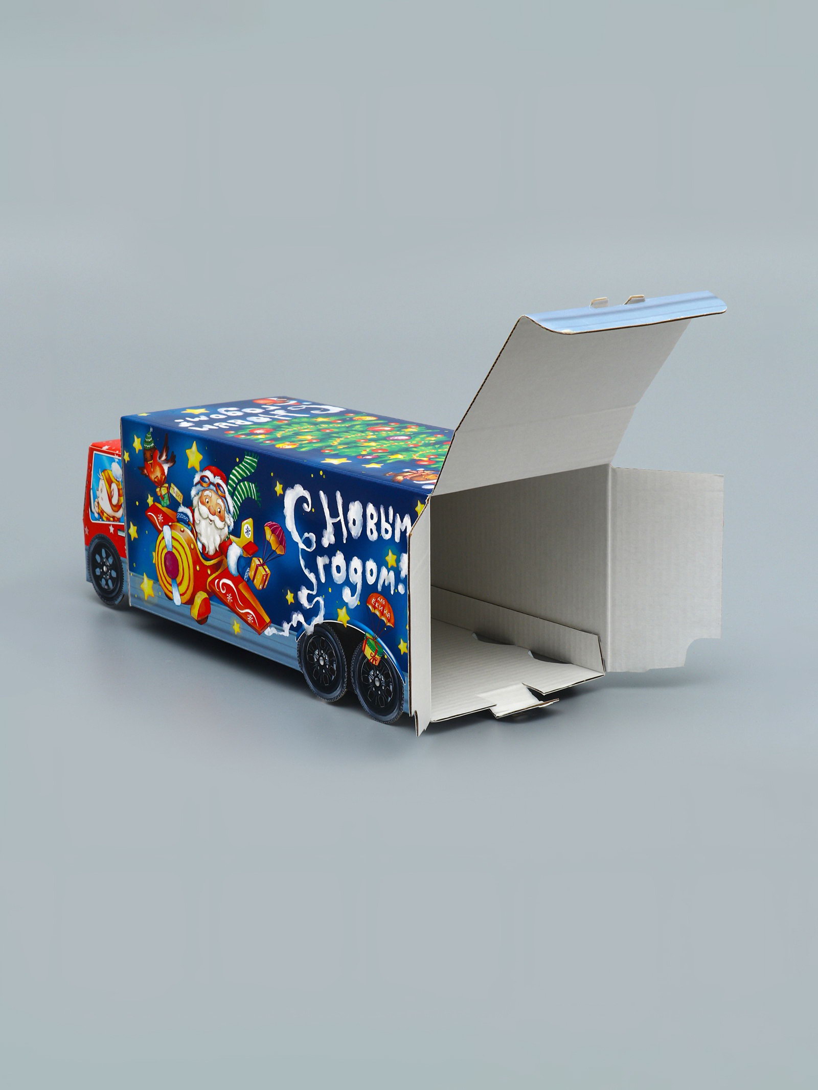 Подарочная коробка Новогодняя Фура "Новогодний пилотаж" с анимацией 36x15x10 см, Россия