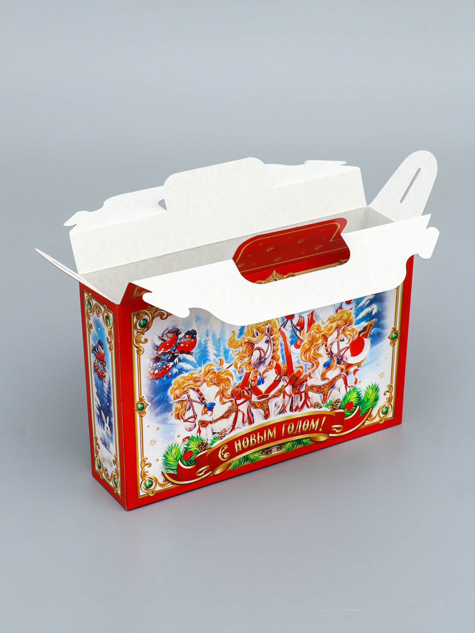 Коробка подарочная новогодняя "Тройка" красная 26x23x7 см, Россия