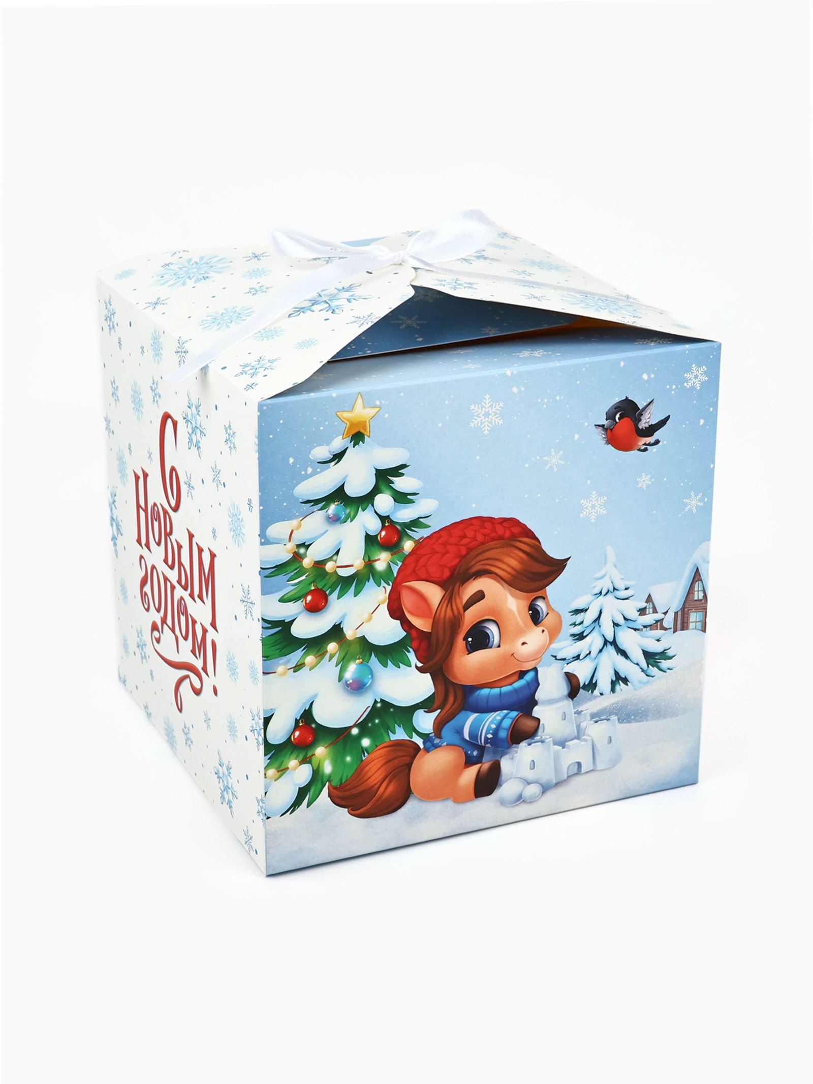Коробка подарочная складная "Новый год 2026", лошади, 18x18x18 см, Дарите Счастье, Китай