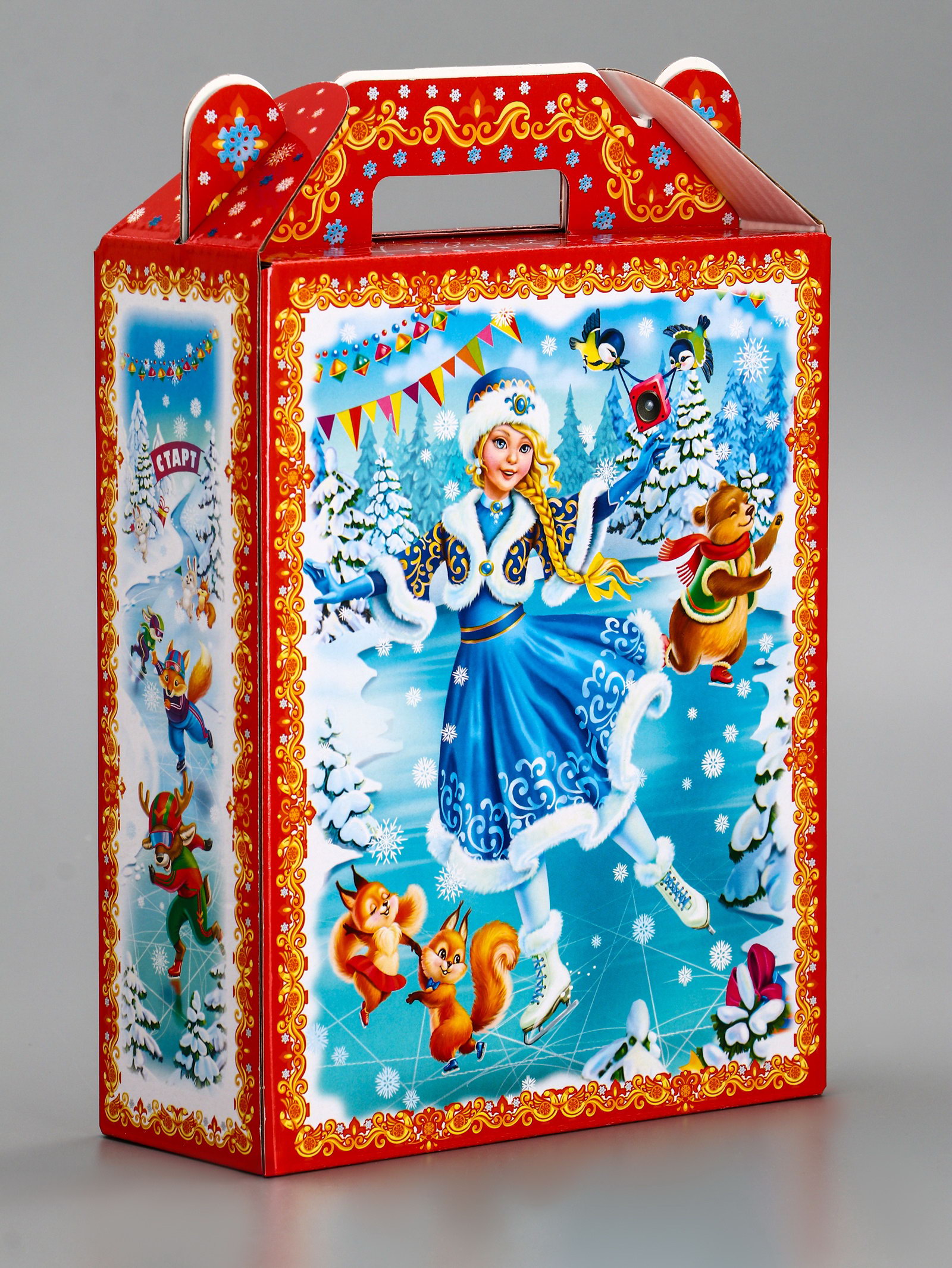 Подарочная новогодняя коробка "Олимпиада", для сладких подарков, 16.8x7x25 см, Россия