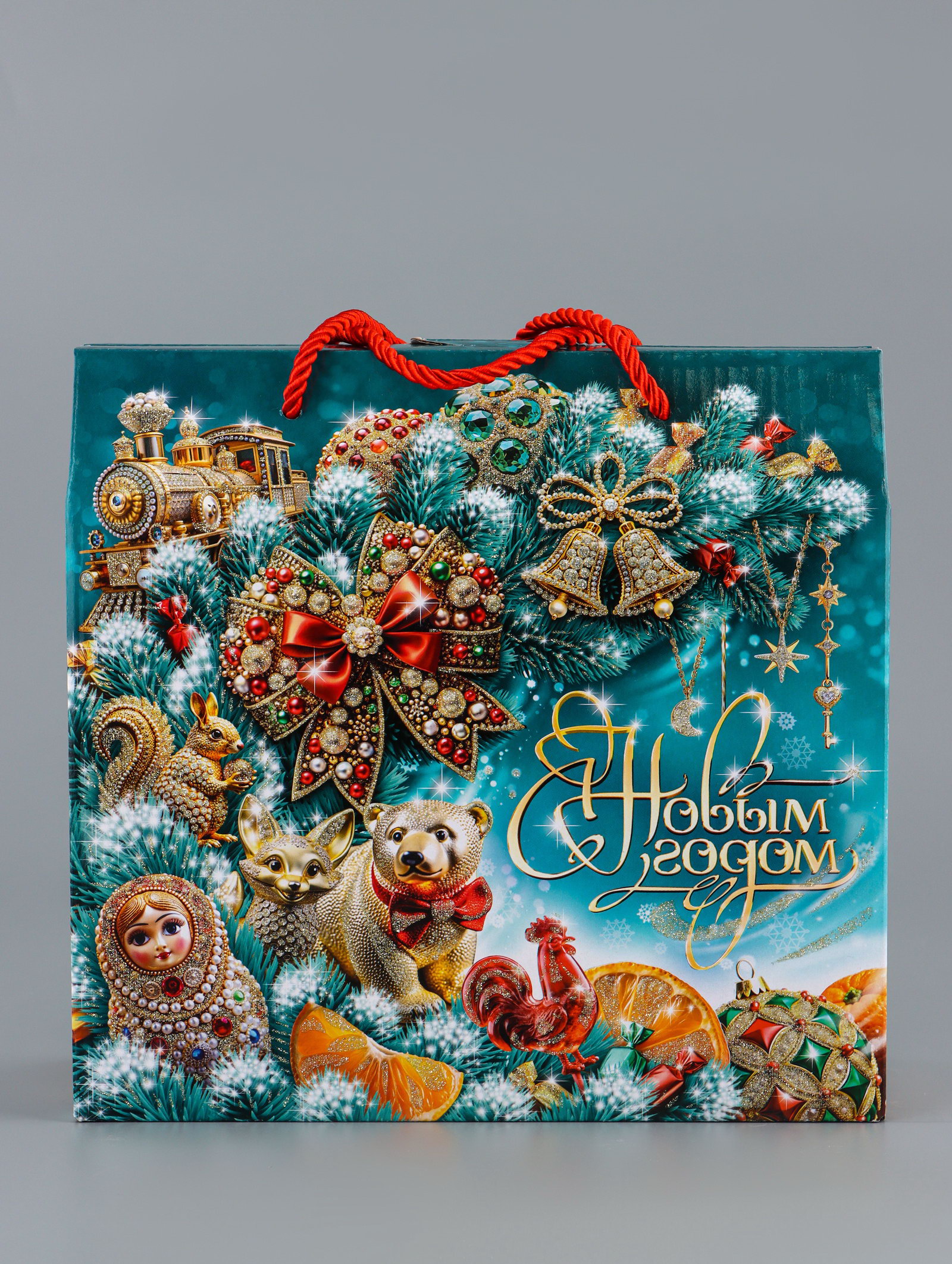 Коробка подарочная новогодняя, складная "МалаХит" 23x10x22 см, Россия
