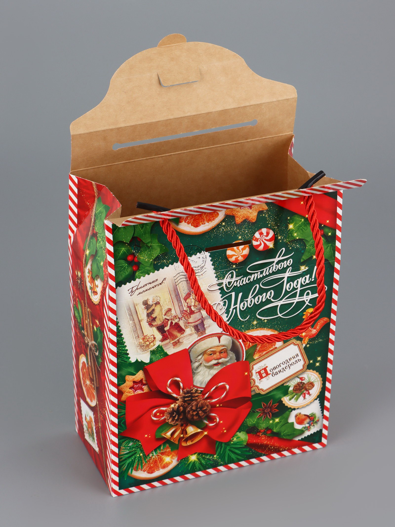 Коробка подарочная новогодняя, складная "Изумрудный винтаж" 16x8x20 см, Россия