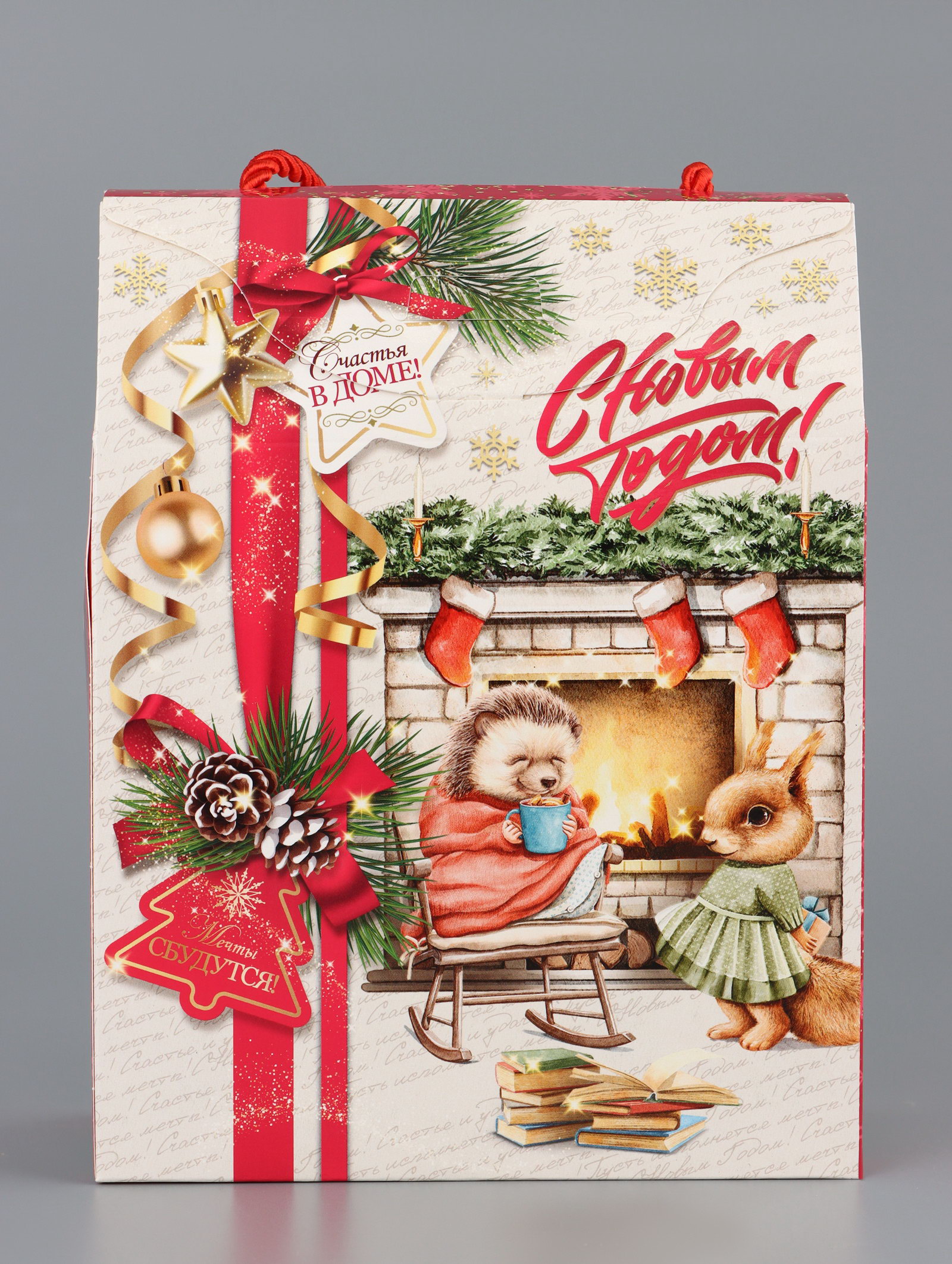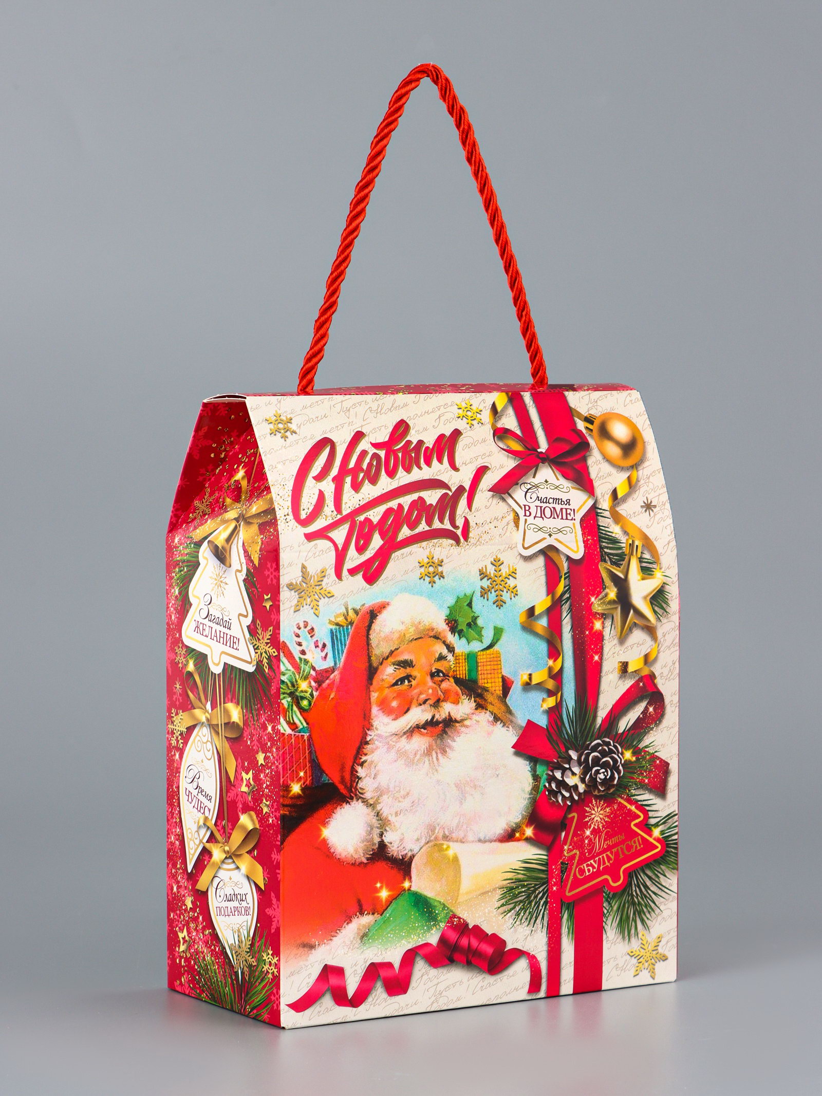 Коробка подарочная новогодняя, складная "Добрые традиции" 16x8x20 см, Россия
