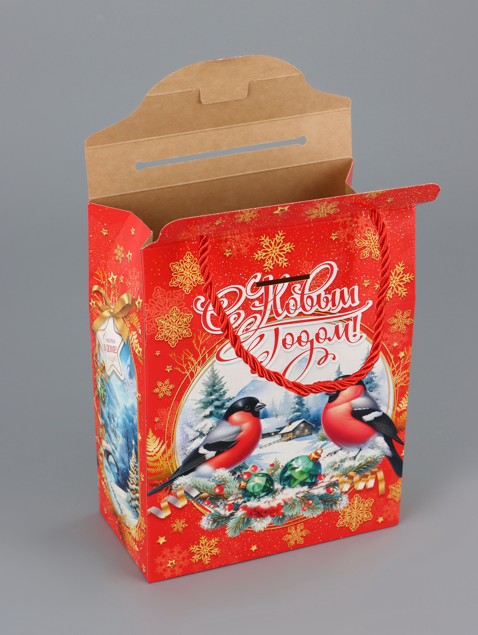 Завершающий акцент для презента: Эта коробка решает задачу эффектной подачи, экономя время на поиск упаковки. Она добавляет ценности подарку и создаёт момент радости при вскрытии. "Снегири" отличный выбор для новогодних праздников, корпоративных подарков или особых случаев. Сделайте момент дарения запоминающимся! | ||