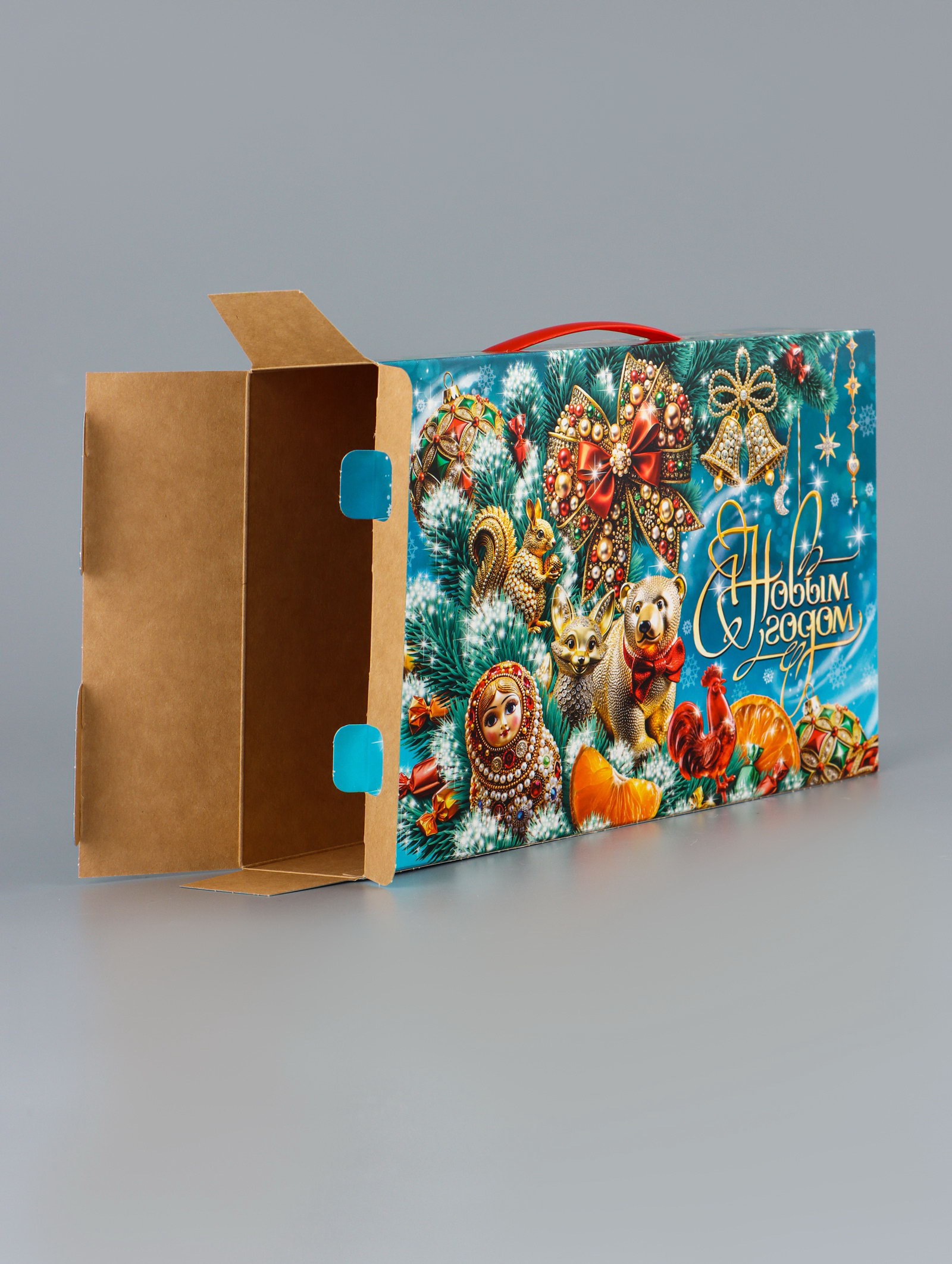 Подарочная новогодняя коробка "МалаХит", для сладких подарков, 25x5x15 см, Россия