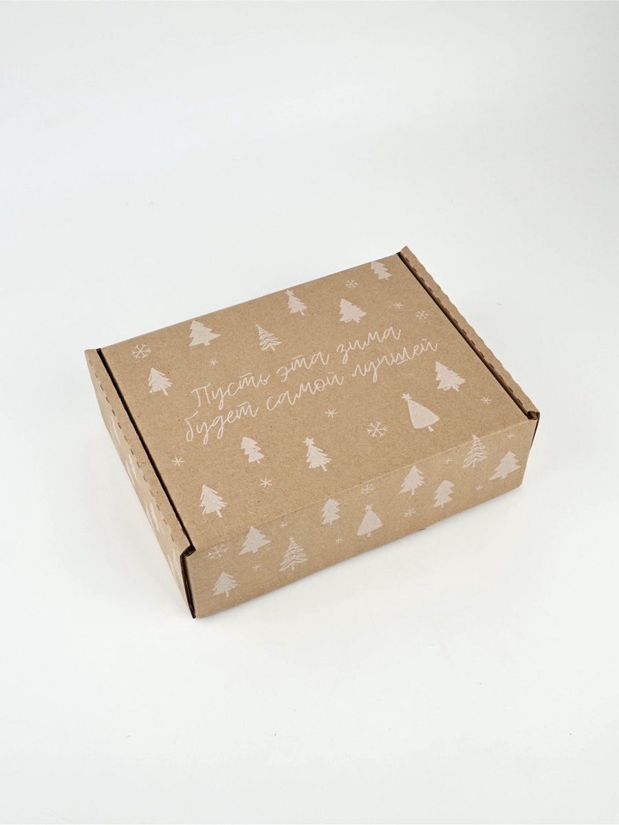 Коробка сборная новогодняя "Ёлочки", бурая, 27x21x9 см, Дарите Счастье, Россия