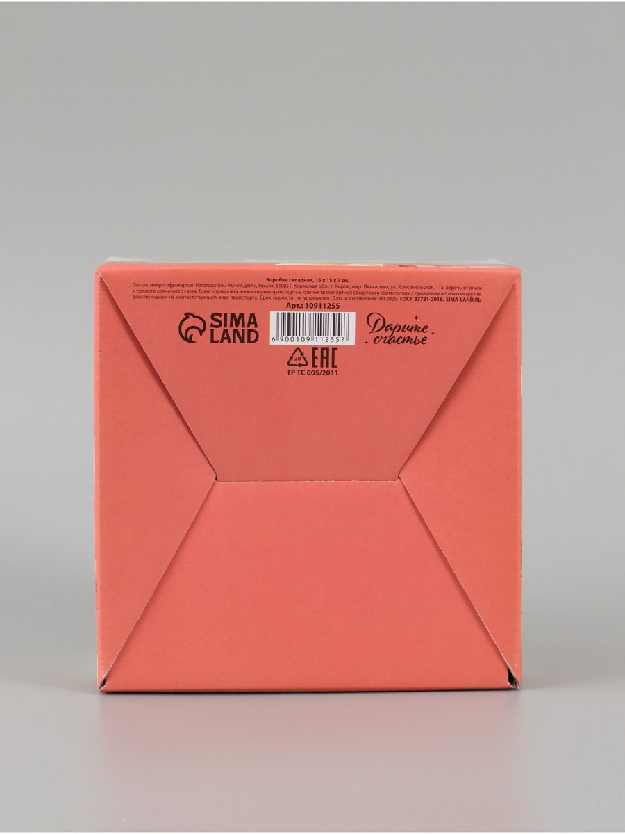Коробка складная "Подарок с любовью", 15x15x7 см, Дарите Счастье, Россия