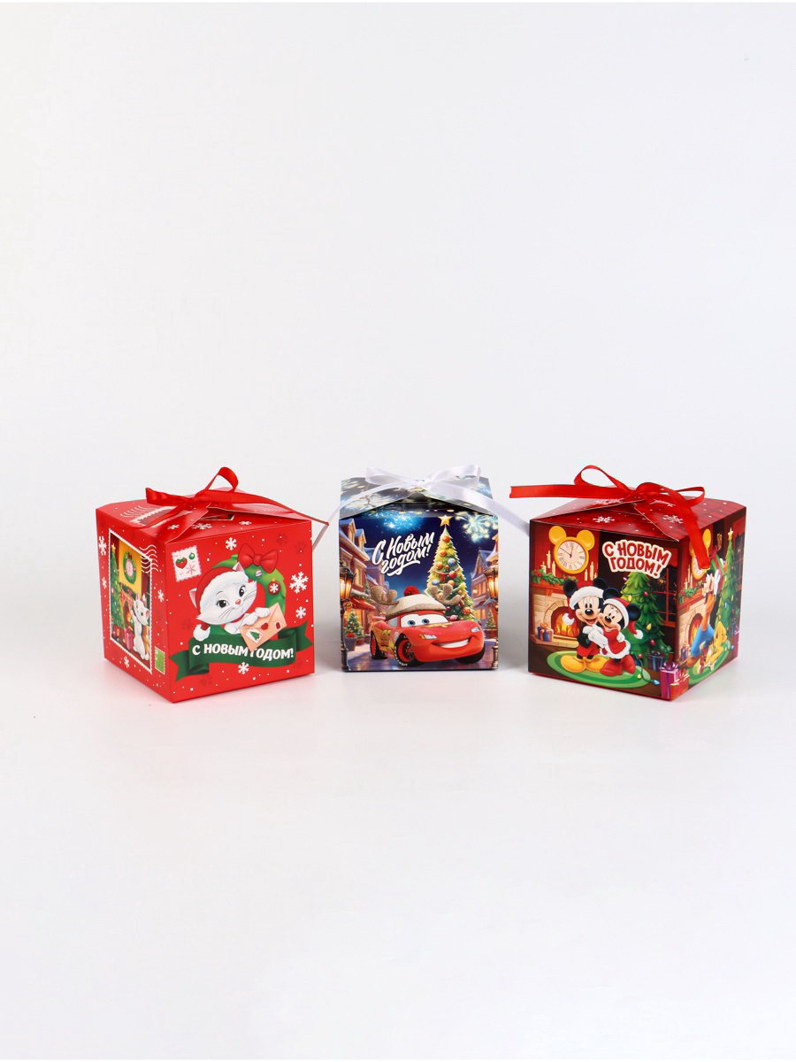 Набор подарочных новогодних коробок 3 шт. "Мультики", 12x12x12 см, Дарите Счастье, Россия
