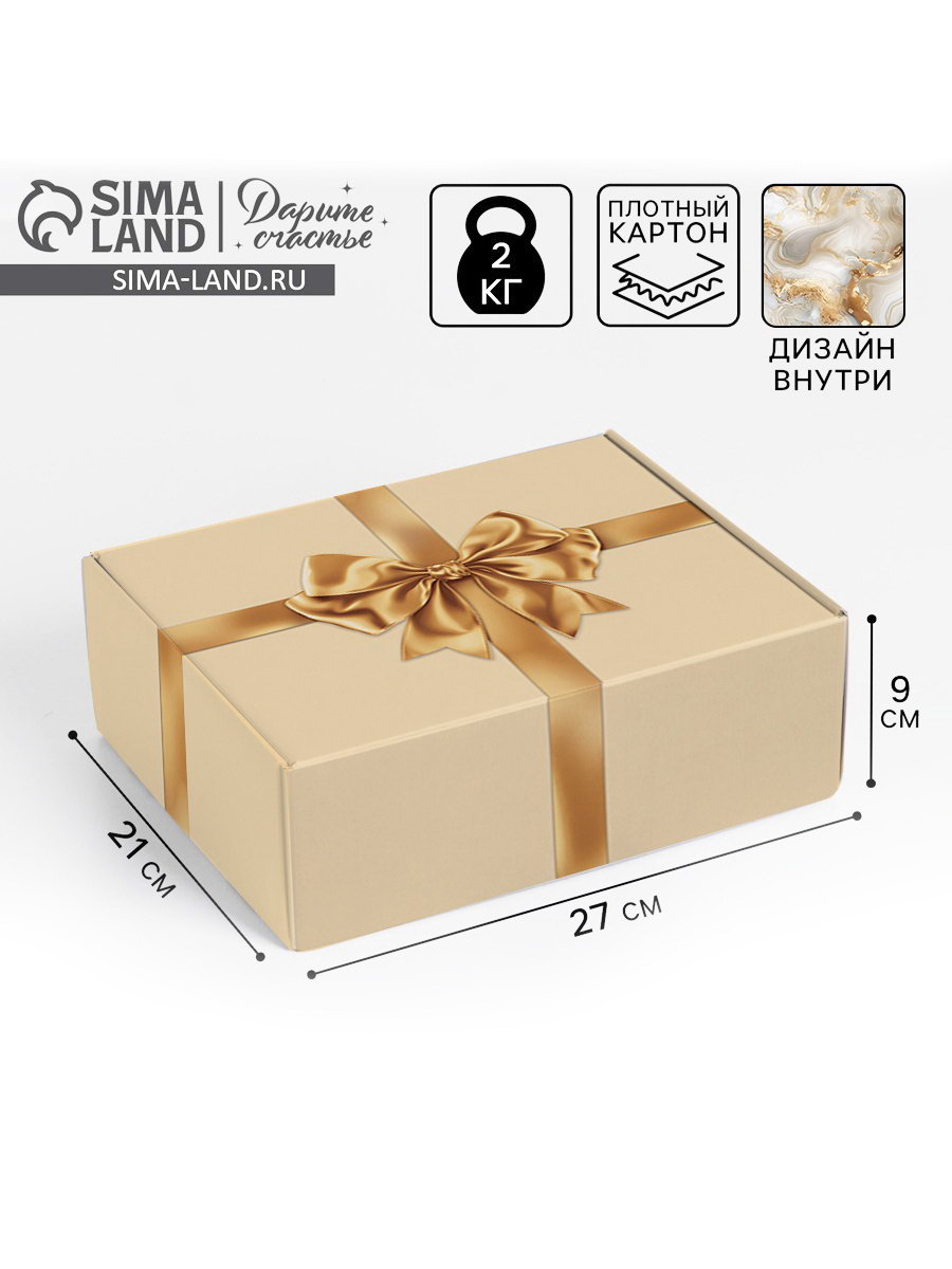 Коробка складная "Золотой бант", 27 x 21 x 9 см, Дарите Счастье, Россия