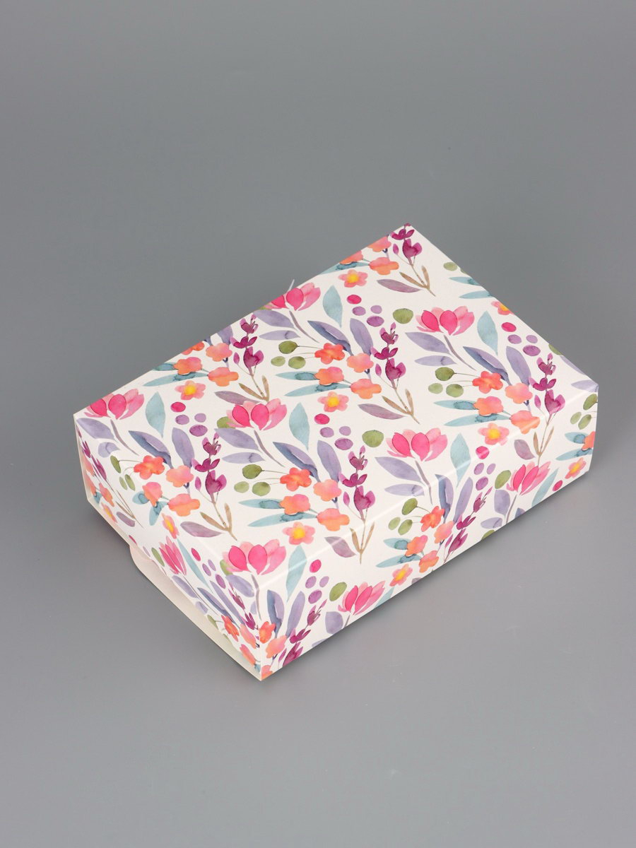 Тематика: Женская, Цветочно-растительная Цвет: Разноцветный, Розовый Тематика праздника: 14 Февраля, 8 Марта Вид: Прямоугольные, Складные коробки Размер упаковки: 29.5 x 0.1 x 37 см. tnved: 4811900000 Температурное ограничение: Нет Размер: Малый (11-17 см) см Форма: Прямоугольная Плотность, г/?2: 250 Допустимый вес вложения, г: 500 Ширина, см: 11.5 Дизайн: С рисунком, надписью Символ года: Нет Окошко: Нет Высота, см: 5 Длина, см: 16.5 Изящный футляр для маленького сюрприза. Небольшая сборная коробка с цветочным дизайном это готовое решение для упаковки лёгкого и изящного подарка. Её нежный дизайн и компактный размер делают её идеальной для подарков женщинам на 8 Марта, 14 февраля или день рождения.