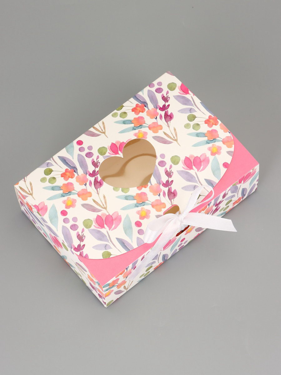 Подарочная коробка сборная с окном "Розовые цветы", 16.5x11, 5x5 см, UPAK LAND, Россия