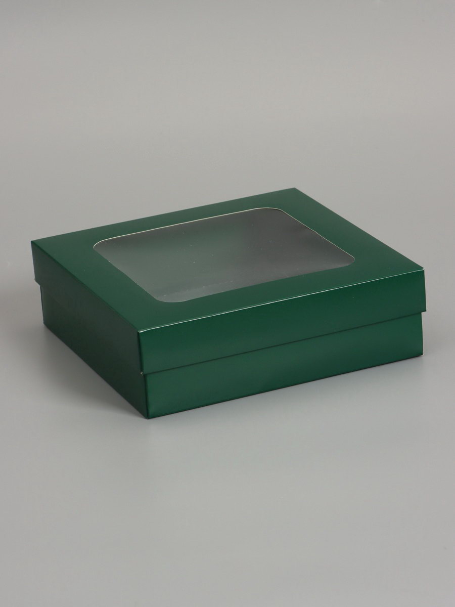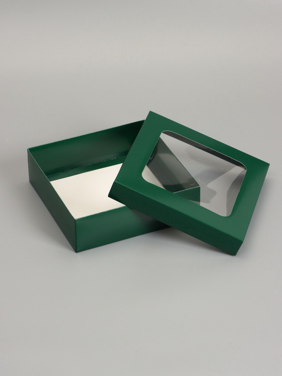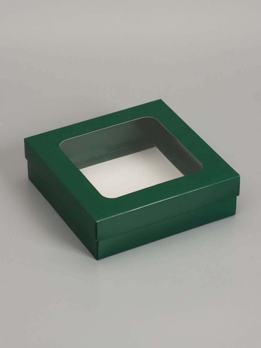 Дом Подарка › Каталог › Упаковка › Подарочная упаковка › Коробки › Складные коробки › Коробка складная, крышка-дно, армейский зелёный, с окном 20 x 20 x 6 см