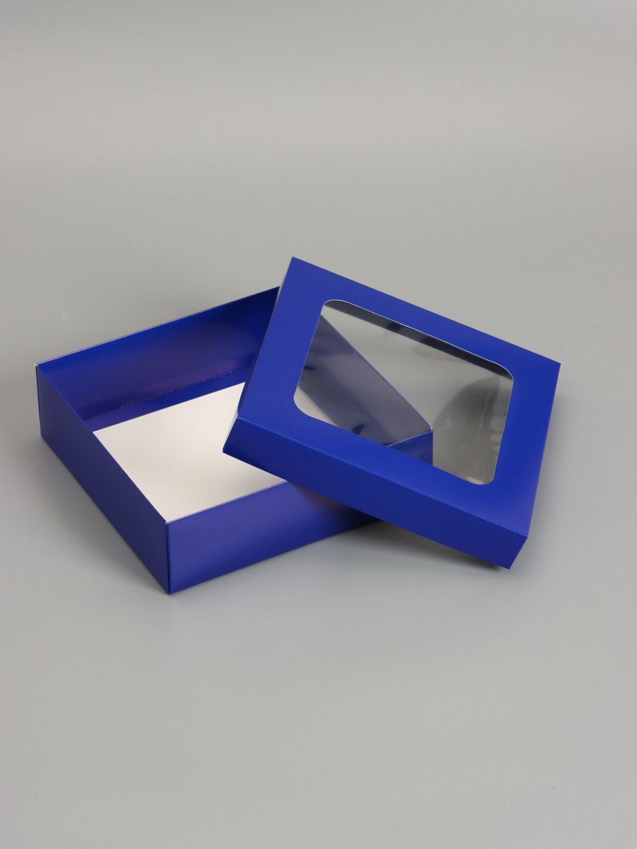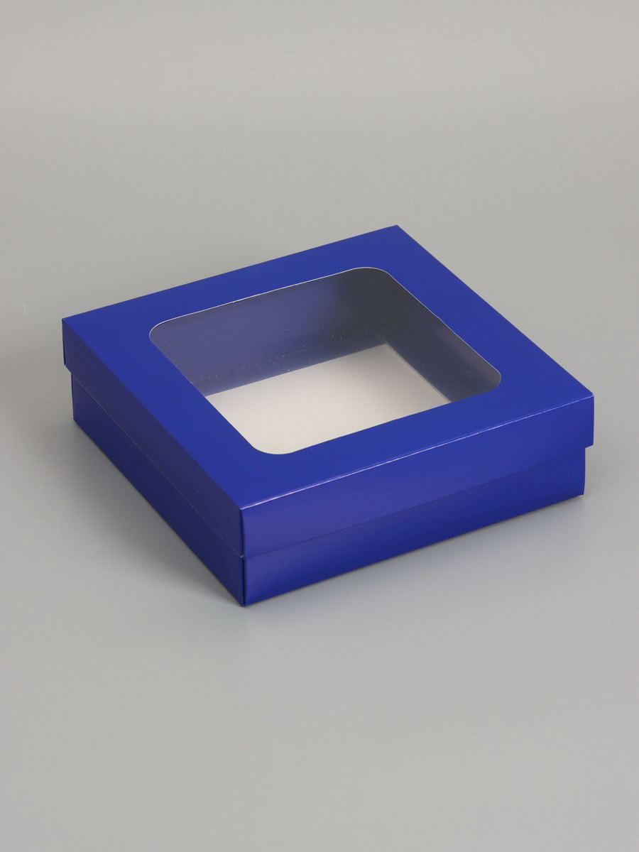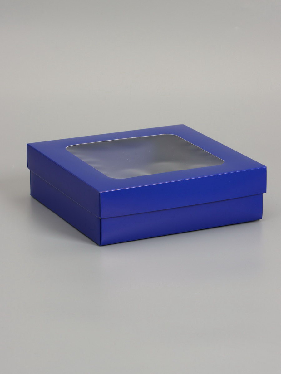 Дом Подарка › Каталог › Упаковка › Подарочная упаковка › Коробки › Складные коробки › Коробка складная, крышка-дно, синяя, с окном 20 x 20 x 6 см