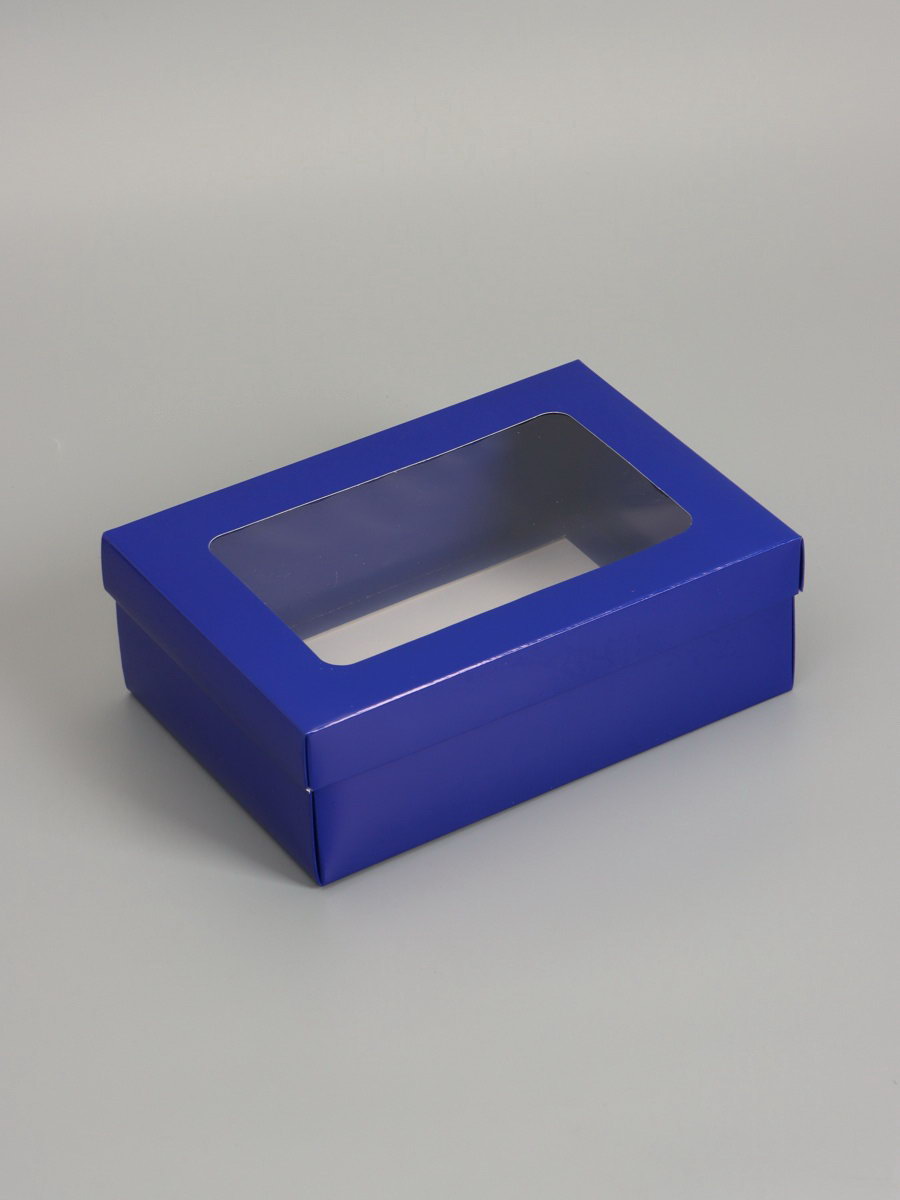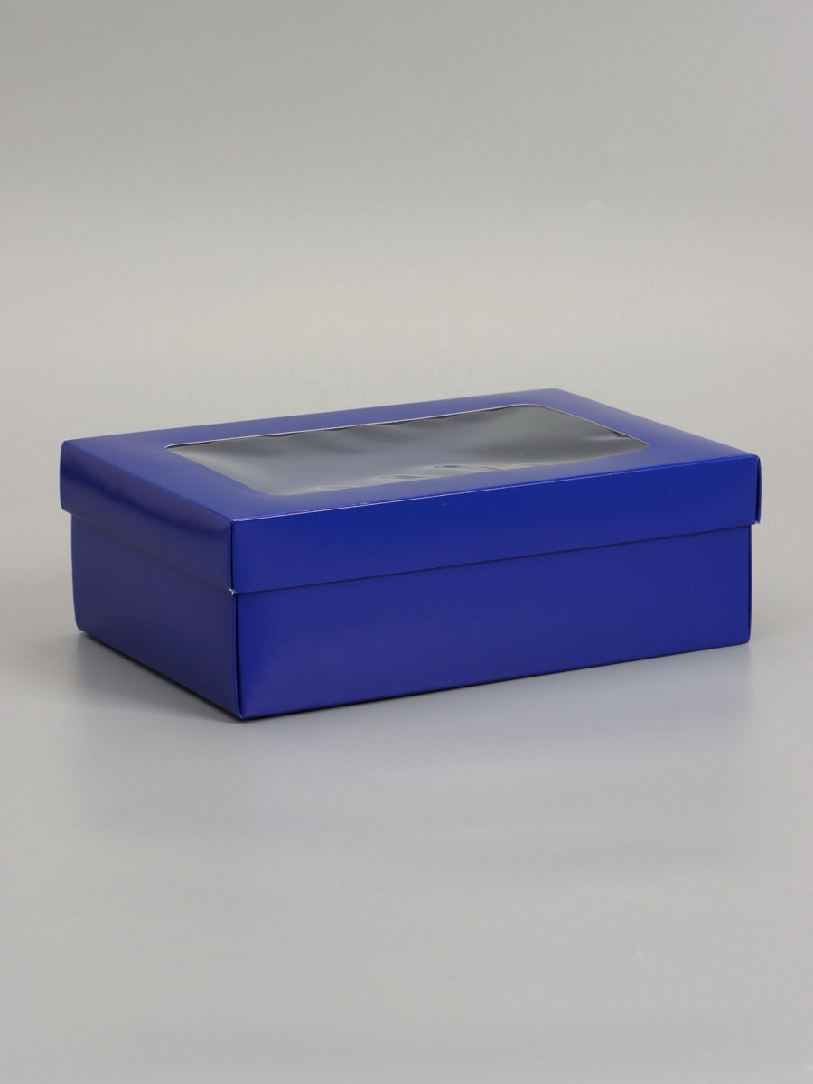 Дом Подарка › Каталог › Упаковка › Подарочная упаковка › Коробки › Складные коробки › Коробка складная, крышка-дно, с окном, синяя, 24 x 17 x 8 см