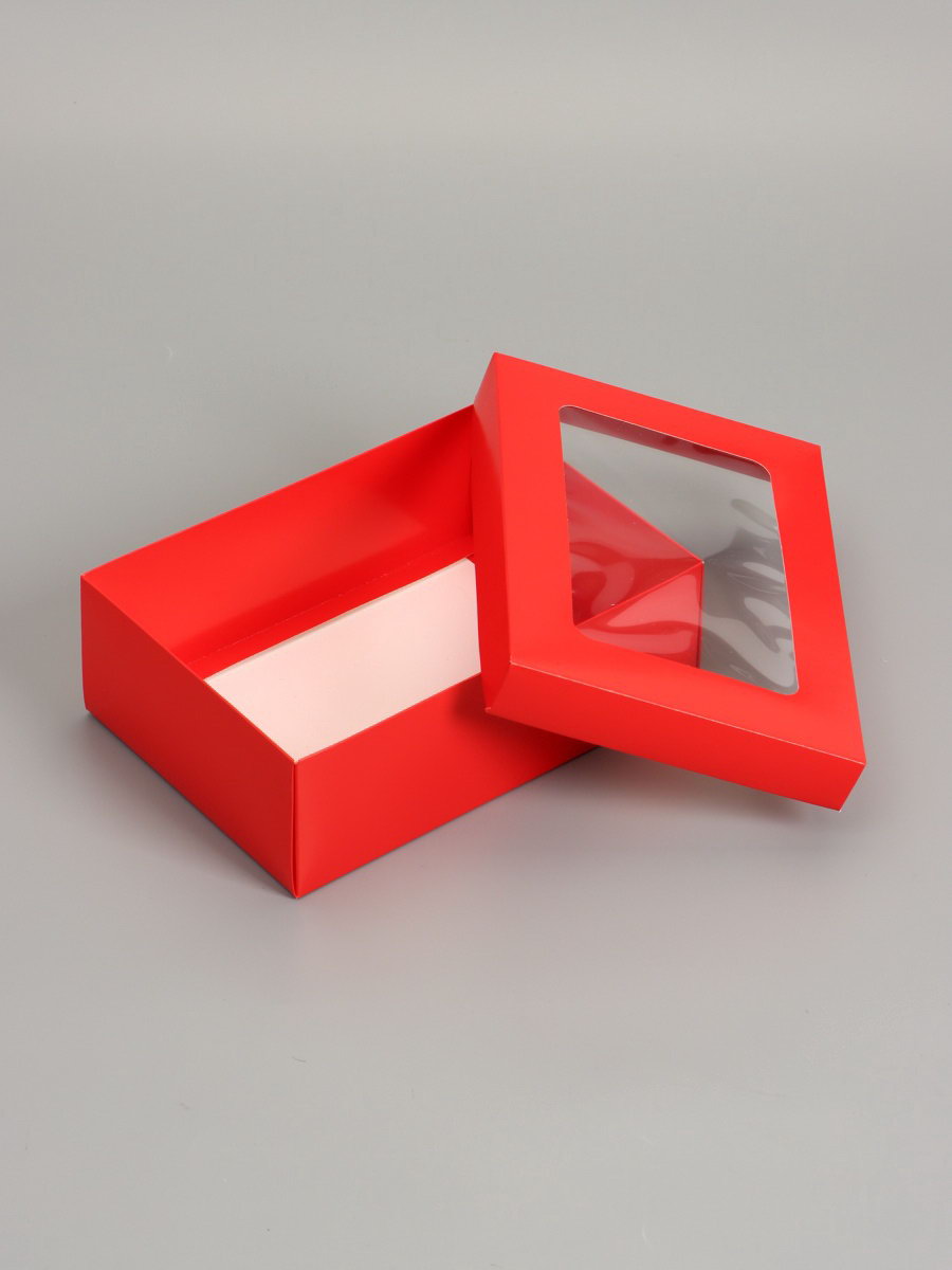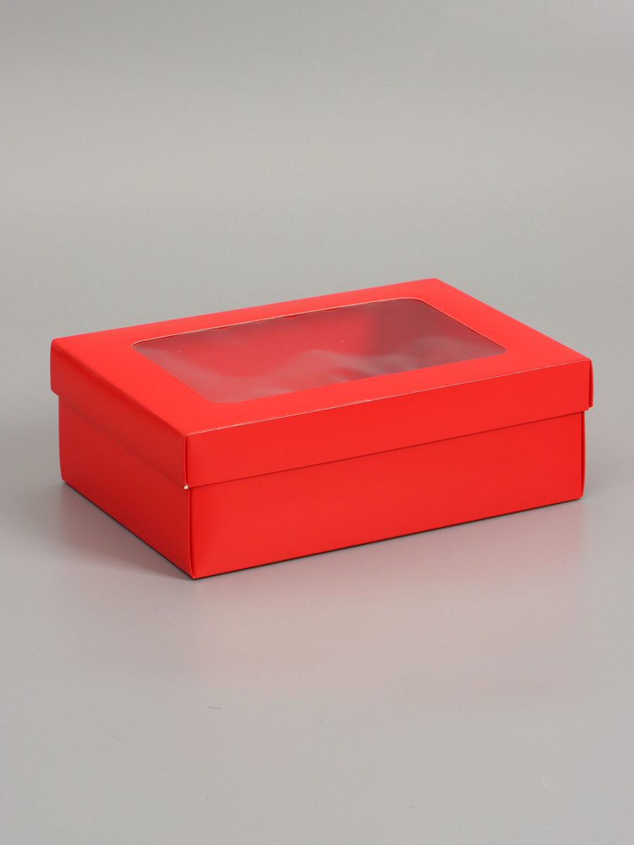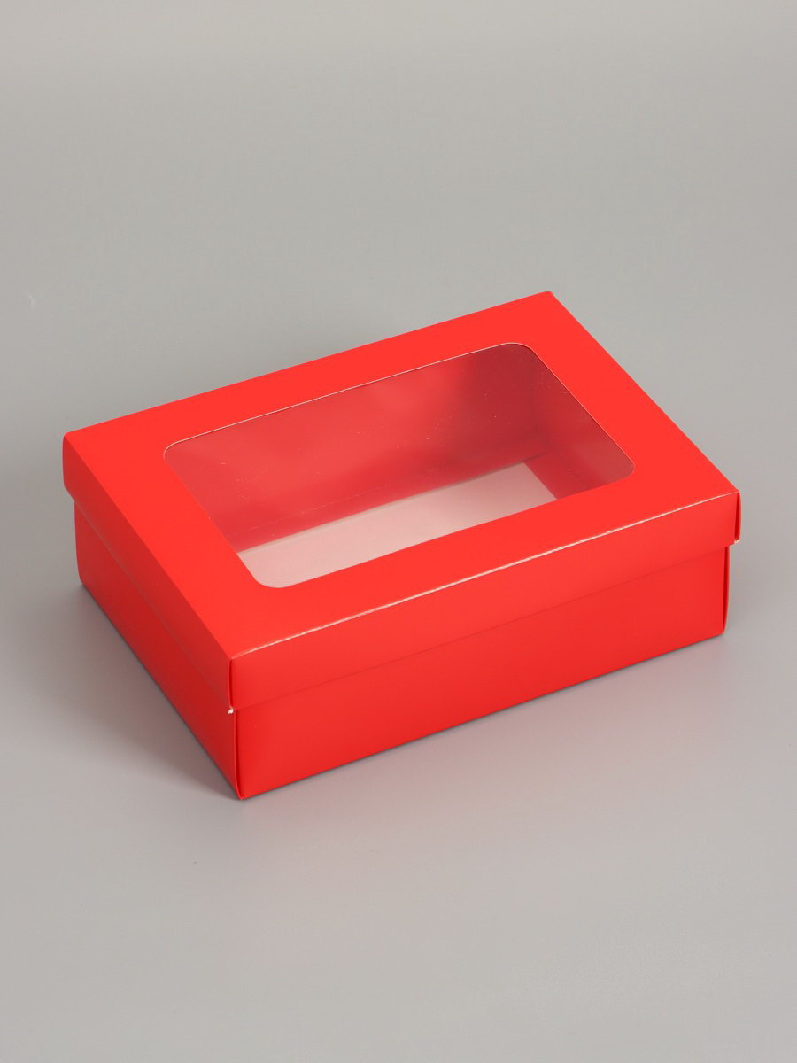 Дом Подарка › Каталог › Упаковка › Подарочная упаковка › Коробки › Складные коробки › Коробка складная, крышка-дно, с окном, красная, 24 x 17 x 8 см