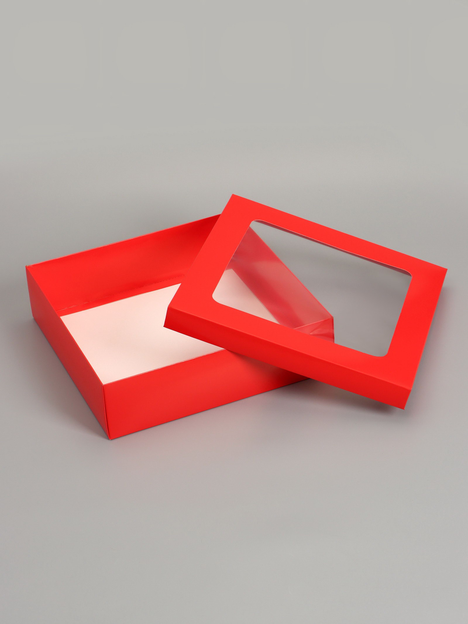Коробка складная, крышка-дно, красная, с окном, 30x30x8 см, UPAK LAND, Китай