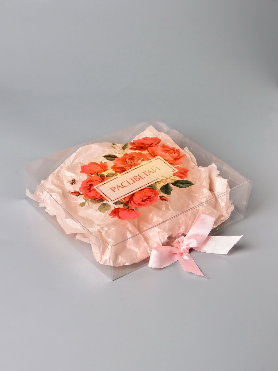 Подарочная коробка с тишью и гирляндой "Расцветай", 20 x 18 x 5 см, 18x20x5 см., Дарите Счастье, Китай
