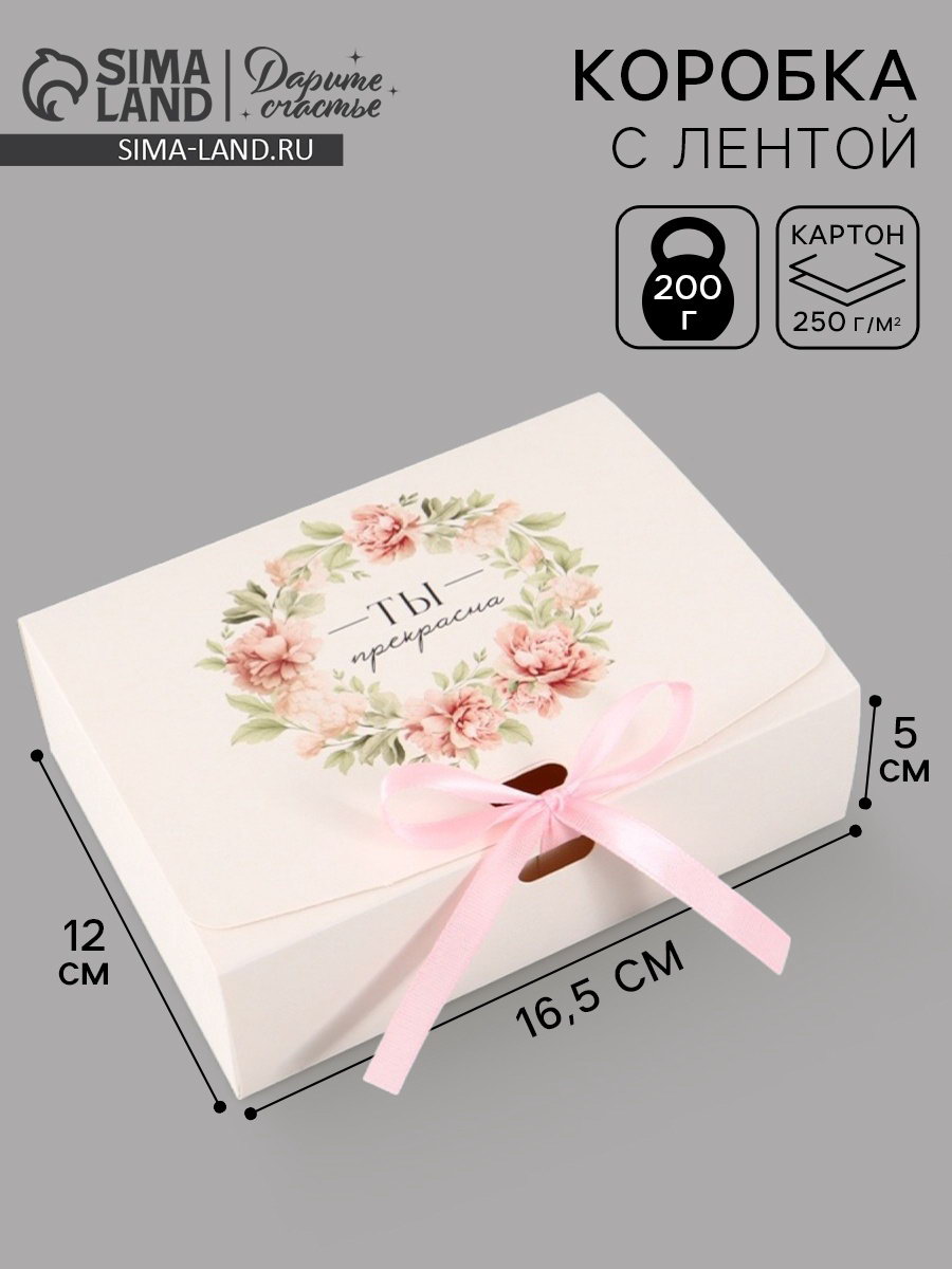 Коробка подарочная складная "Ты прекрасна", 16.5x12x5 см, Дарите Счастье, Россия
