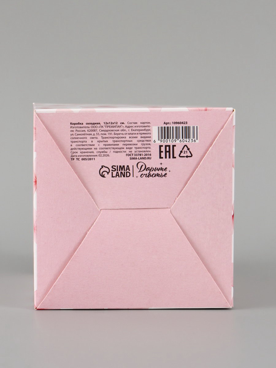 Вид: Квадратные, Складные коробки Размер упаковки: 24 x 27 x 0.2 см. tnved: 4819200000 Тематика: Цветочно-растительная Тематика праздника: Универсальная тематика Символ года: Нет Крышка-дно: Нет Окошко: Нет Форма: Куб Ширина, см: 12 Допустимый вес вложения, г: 350 Дизайн: С рисунком, надписью Высота, см: 12 Размер: Малый (11-17 см) см Плотность, г/?2: 250 Длина, см: 12 Цвет: Розовый Подарочная коробка "Цветы" это нежная упаковка для подарков с душой. Розовый куб с растительным рисунком выглядит свежо и женственно, подходя для любого повода, когда хочется порадовать близкого человека.
