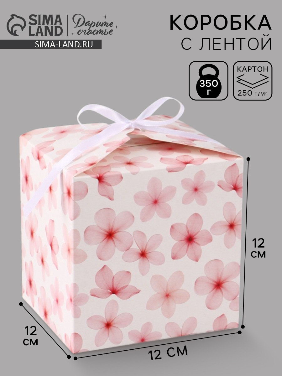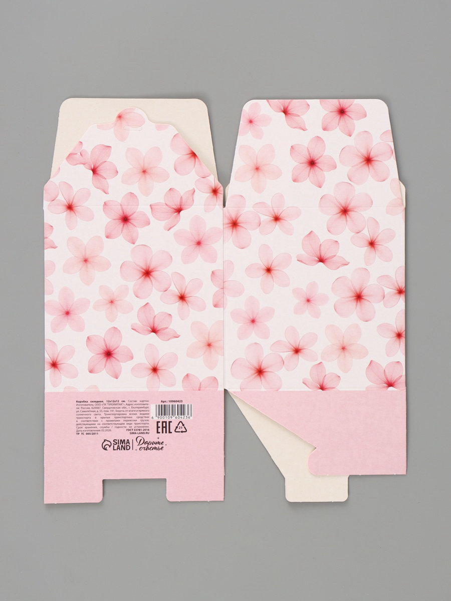 Коробка подарочная складная "Цветы", 12x12x12 см, Дарите Счастье, Россия