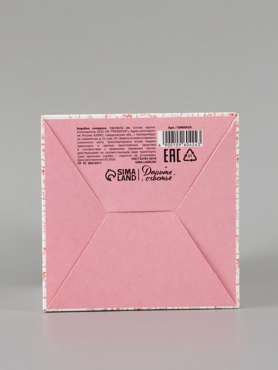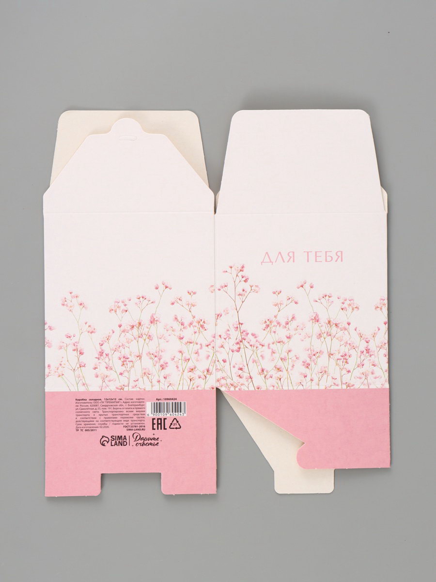 Вид: Квадратные, Складные коробки Размер упаковки: 24 x 27 x 0.2 см. tnved: 4819200000 Тематика праздника: Универсальная тематика Символ года: Нет Форма: Куб Окошко: Нет Крышка-дно: Нет Ширина, см: 12 Допустимый вес вложения, г: 350 Высота, см: 12 Плотность, г/?2: 250 Размер: Малый (11-17 см) см Дизайн: С рисунком, надписью Длина, см: 12 Цвет: Белый Тематика: Цветочно-растительная Подарочная коробка "Для тебя" это универсальная упаковка для тех, кто ценит простоту и стиль. Белый куб с нежным розовым цветочным рисунком и лаконичной надписью подходит для любого повода: от дня рождения до приятного сюрприза без официального предлога.