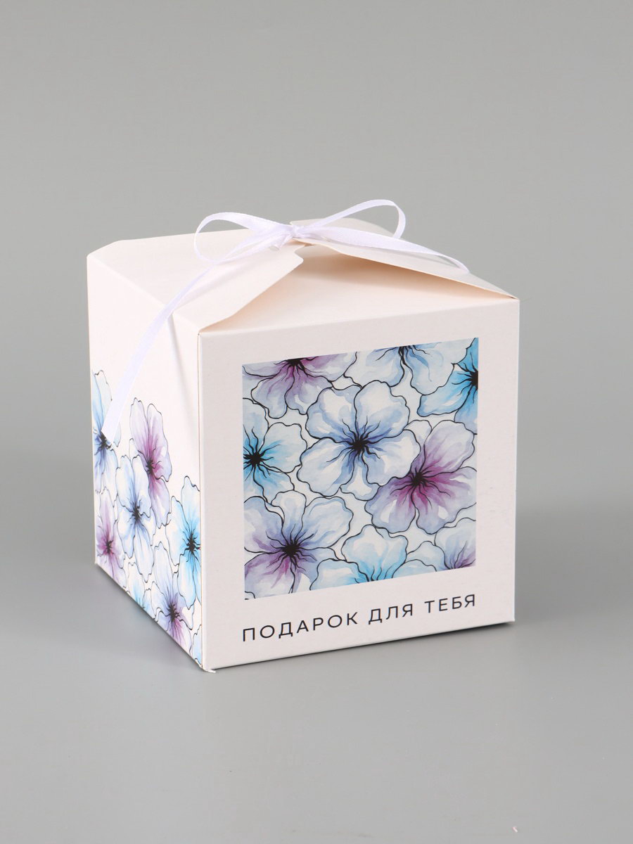 Коробка подарочная складная "Акварельные цветы", 12x12x12 см, Дарите Счастье, Россия
