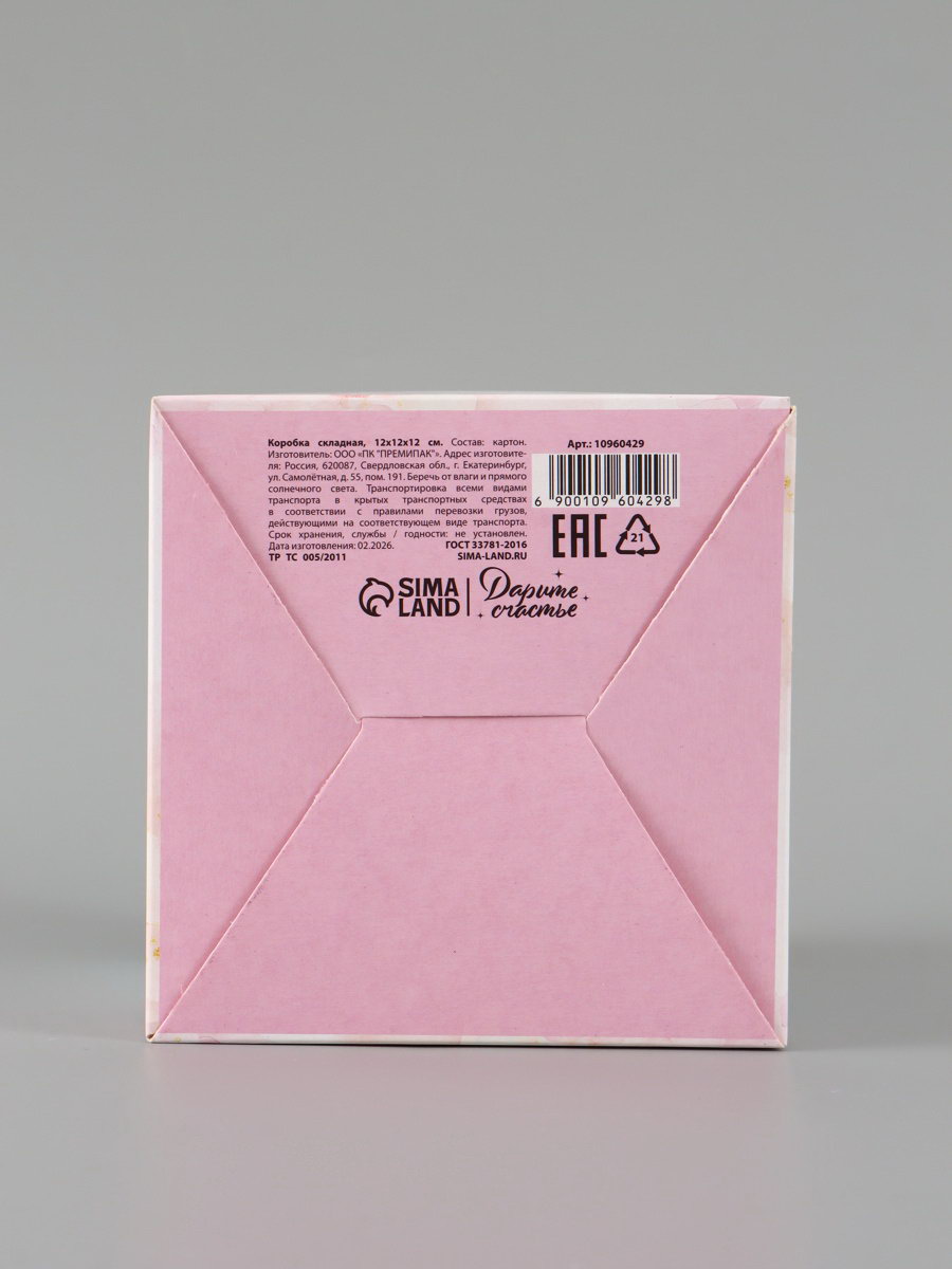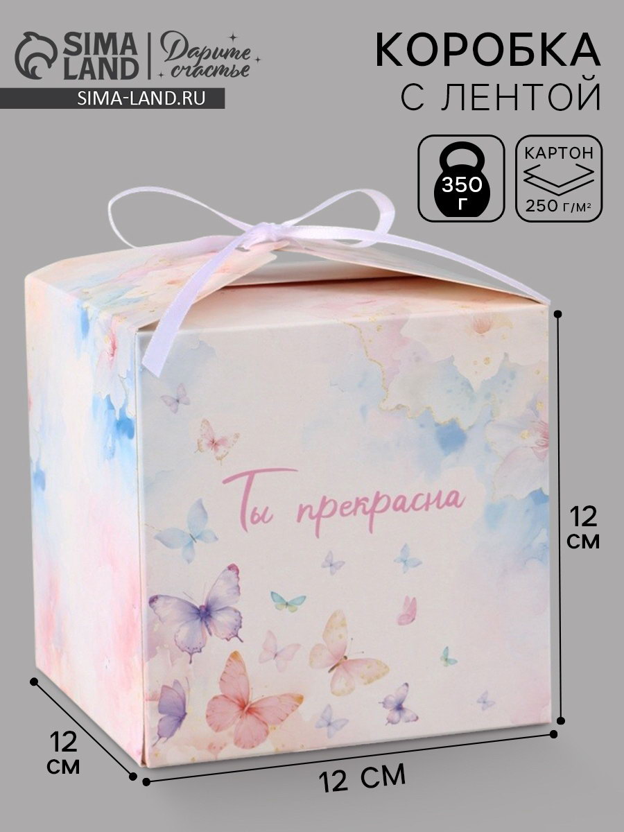 Коробка подарочная складная "Ты прекрасна", 12x12x12 см, Дарите Счастье, Россия