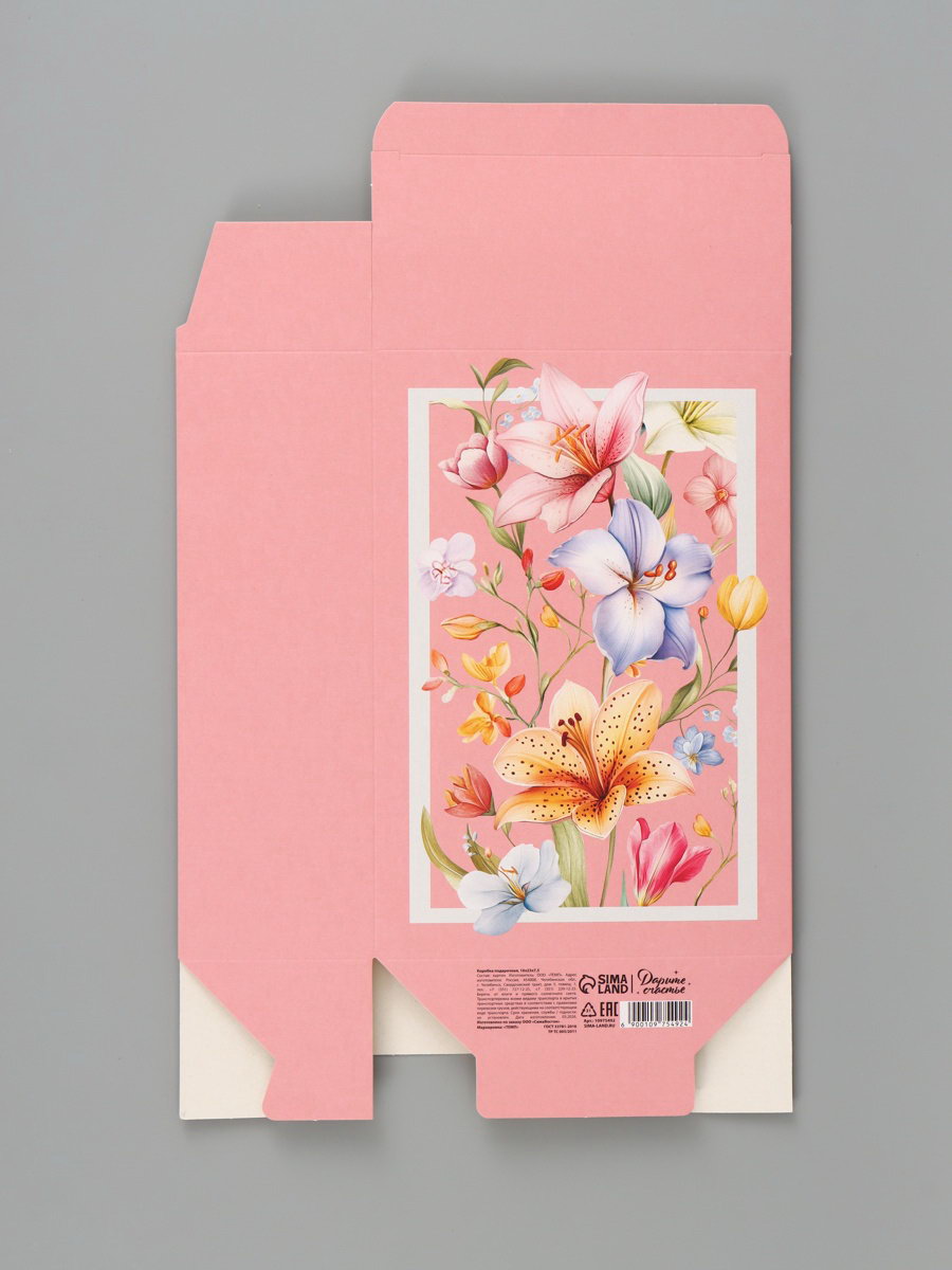 Вид: Прямоугольные, Складные коробки Размер упаковки: 23.5 x 38.5 x 0.1 см. tnved: 4819200000 Ширина, см: 16 Допустимый вес вложения, г: 300 Форма: Прямоугольная Символ года: Нет Окошко: Нет Дизайн: С рисунком, надписью Тематика праздника: Универсальная тематика Крышка-дно: Нет Тематика: Цветочно-растительная Длина, см: 23 Высота, см: 7.5 Плотность, г/?2: 250 Цвет: Розовый Размер: Средний (18-24 см) см | ||
