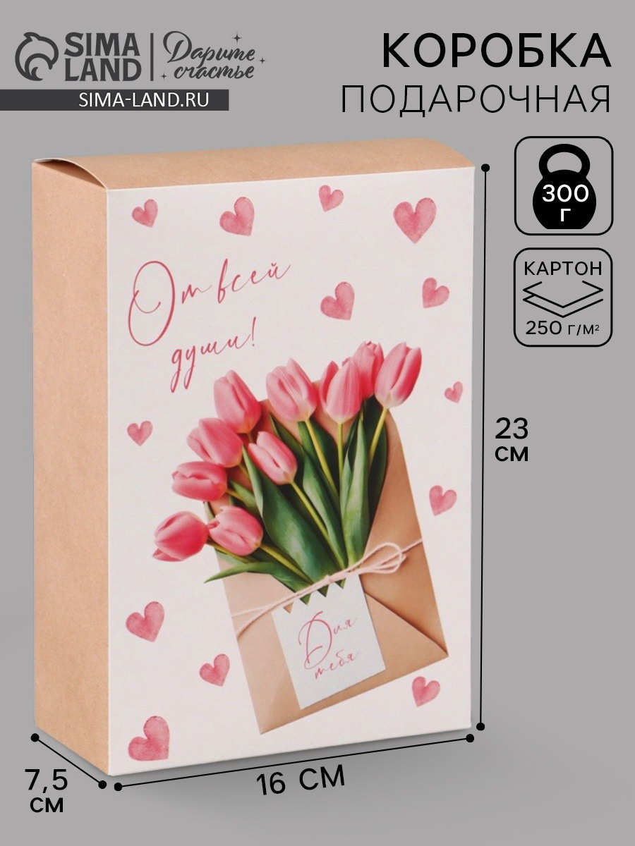 Коробка подарочная складная "С любовью", 16x23x7.5 см, Дарите Счастье, Россия