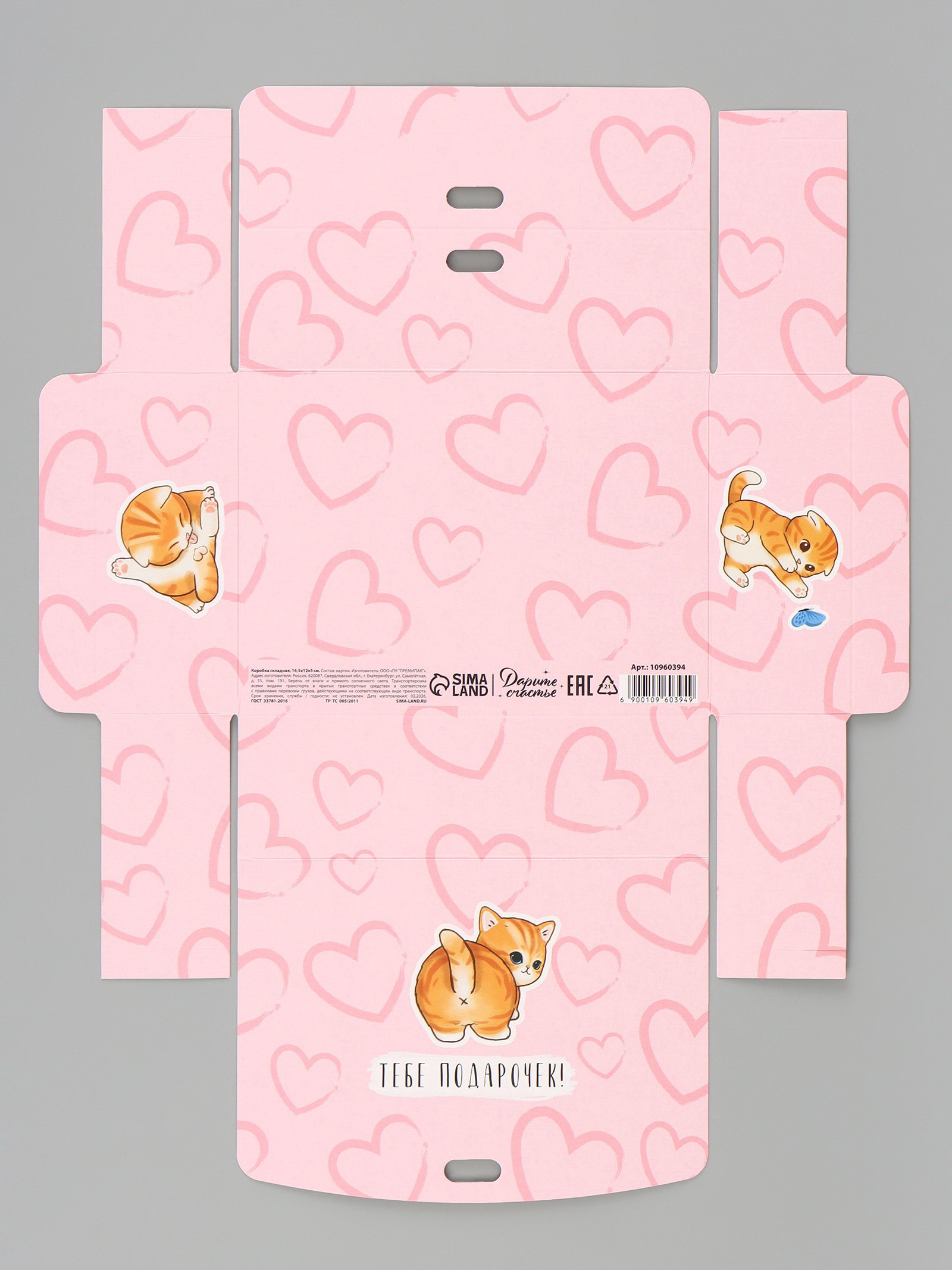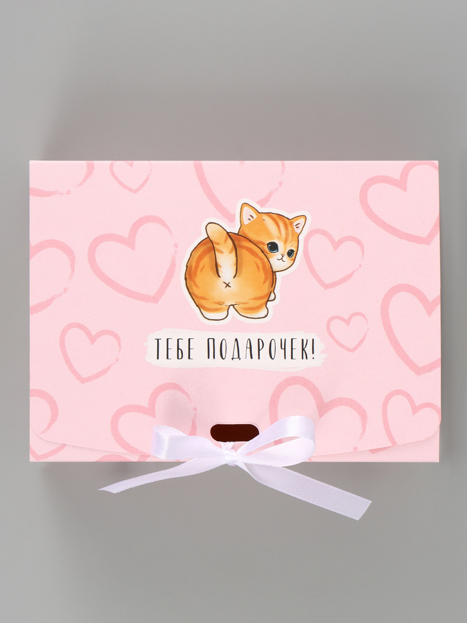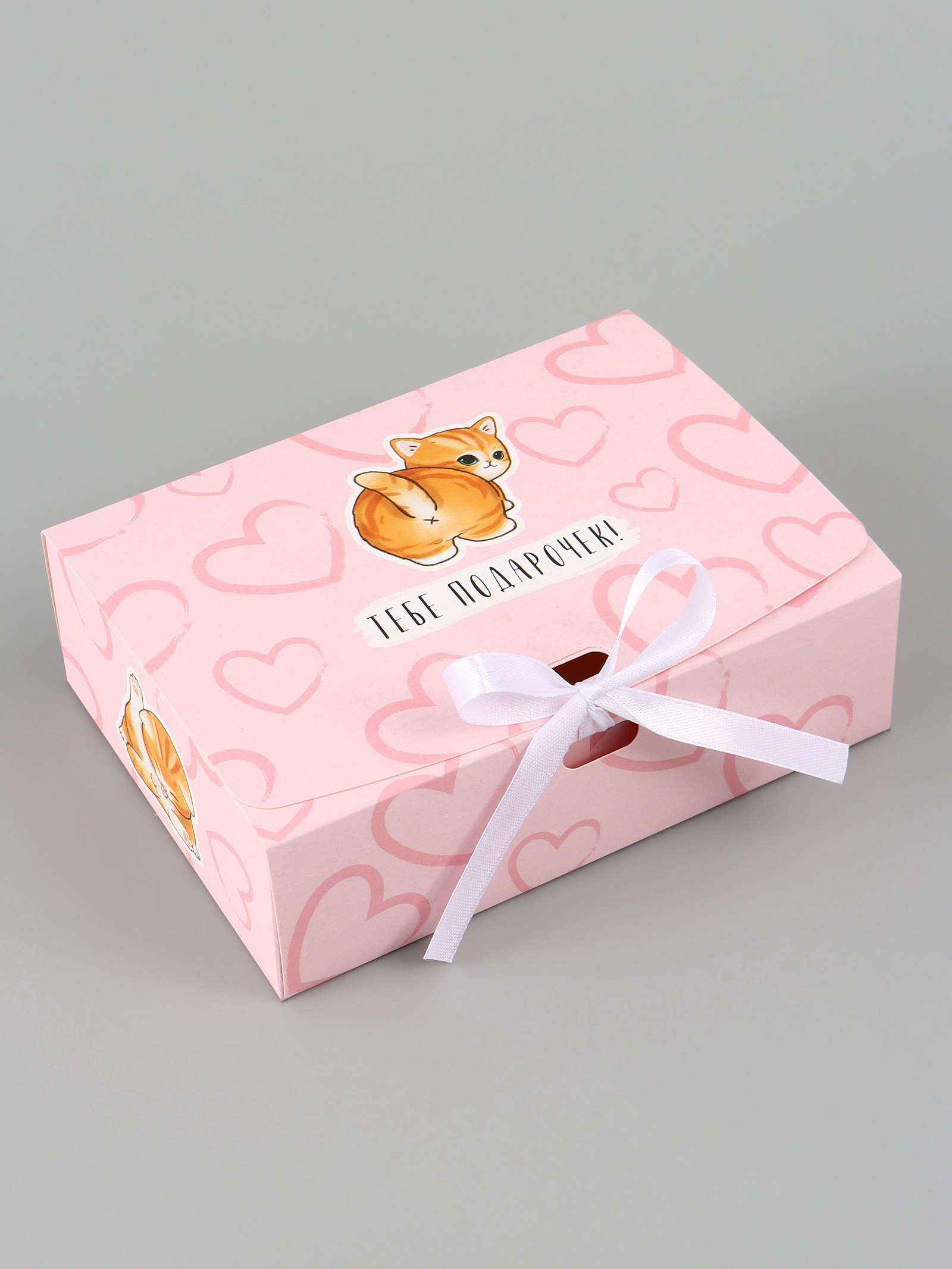 Коробка подарочная самосборная "Держи подарочек", 16.5x12x5 см, с лентой, Дарите Счастье, Россия