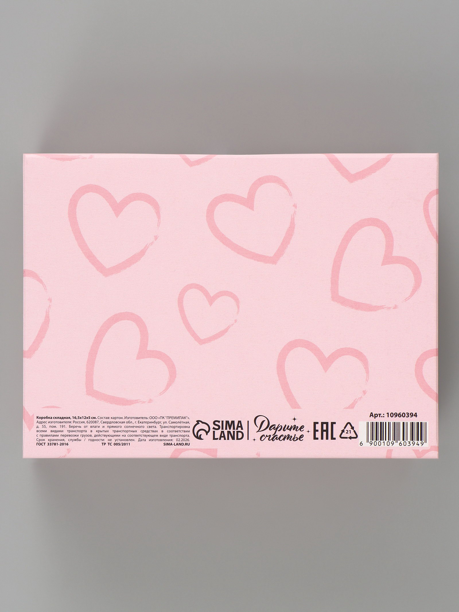 Вид: Прямоугольные, С лентой, Складные коробки Тематика: Надписи, цифры, буквы, С сердечками Размер упаковки: 0.3 x 17 x 17 см. tnved: 4819200000 Размер: Малый (11-17 см) см Плотность, г/?2: 250 Символ года: Нет Тематика праздника: Универсальная тематика Длина, см: 16.5 Высота, см: 5 Окошко: Нет Допустимый вес вложения, г: 200 Крышка-дно: Нет Ширина, см: 12 Цвет: Розовый Дизайн: С рисунком, надписью Форма: Прямоугольная | ||