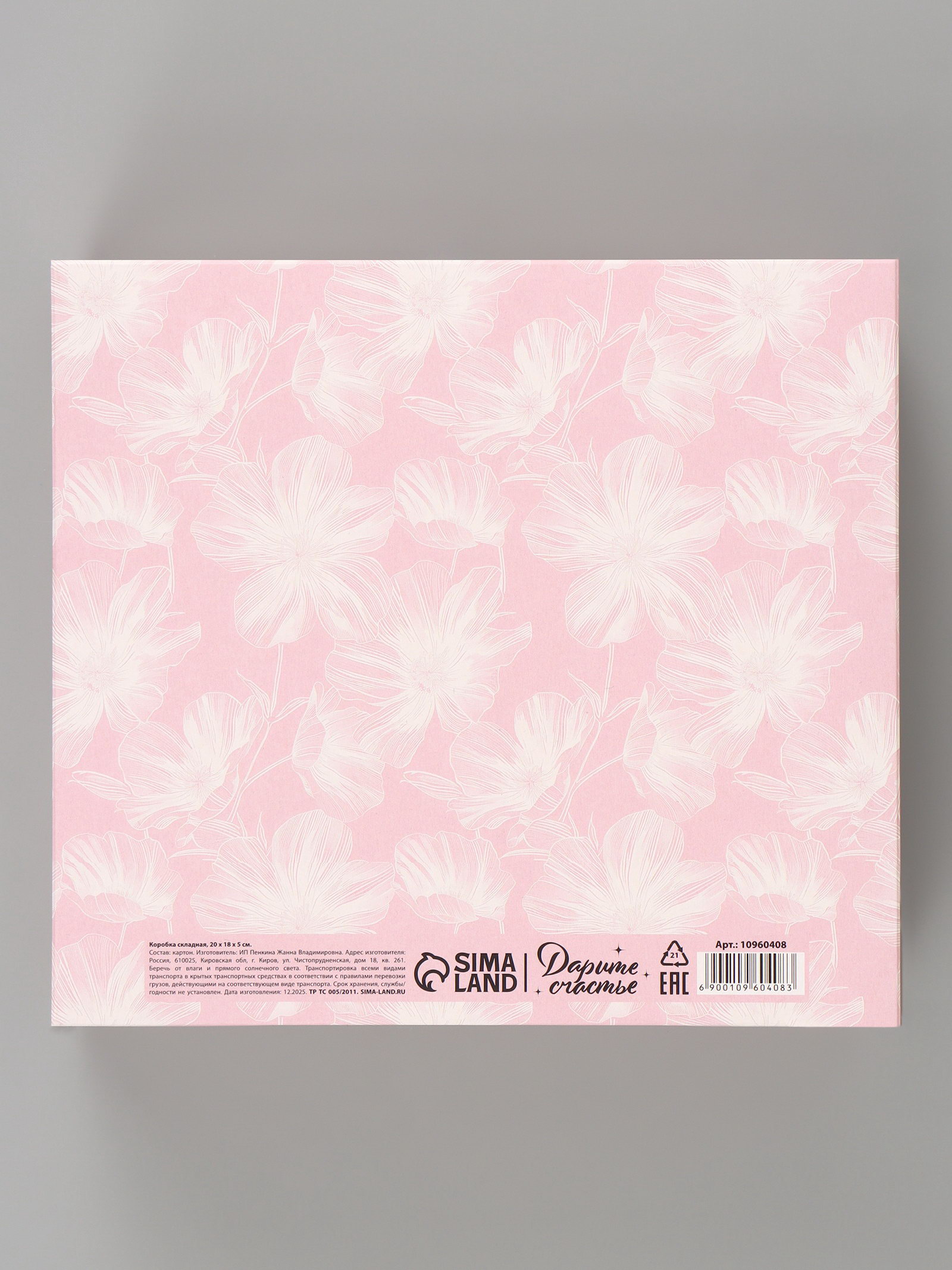Вид: Прямоугольные, С лентой, Складные коробки Размер упаковки: 20 x 0.3 x 29 см. tnved: 4819200000 Дизайн: С рисунком, надписью Допустимый вес вложения, г: 350 Крышка-дно: Нет Цвет: Розовый Символ года: Нет Тематика: Цветочно-растительная Плотность, г/?2: 250 Форма: Прямоугольная Окошко: Нет Тематика праздника: Универсальная тематика Ширина, см: 18 Размер: Средний (18-24 см) см Высота, см: 5 Длина, см: 20 | ||