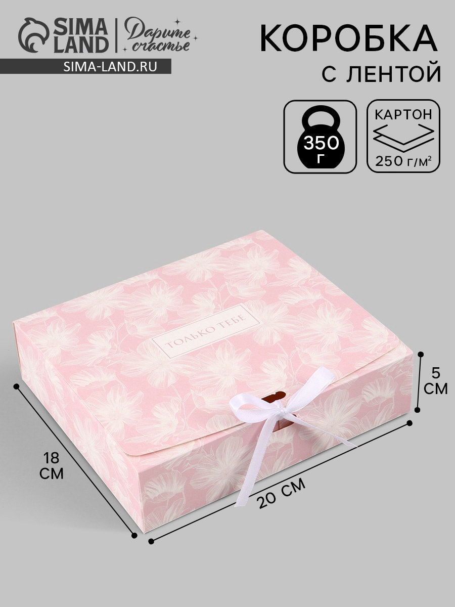 Коробка подарочная самосборная "Только тебе", 20x18x5 см, с лентой, Дарите Счастье, Россия