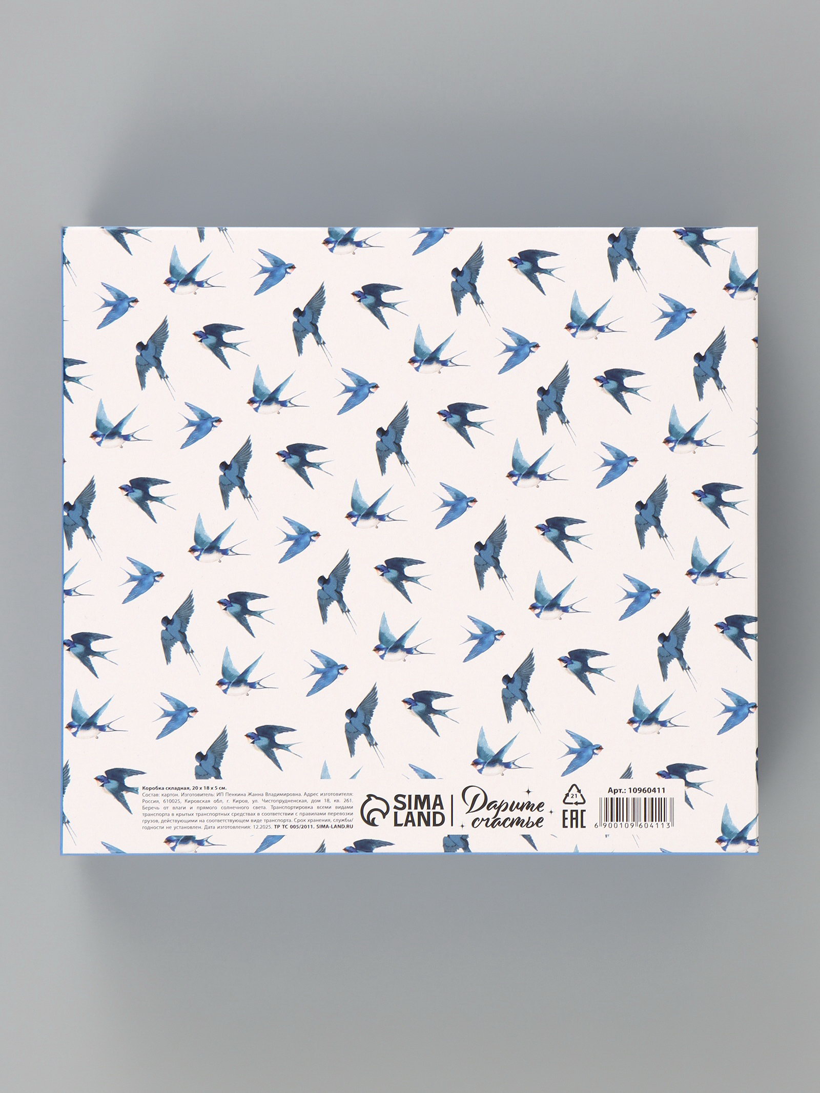 Вид: Прямоугольные, С лентой, Складные коробки Размер упаковки: 0.2 x 30 x 20 см. tnved: 4819200000 Дизайн: С рисунком, надписью Допустимый вес вложения, г: 350 Крышка-дно: Нет Цвет: Голубой Плотность, г/?2: 250 Тематика праздника: Универсальная тематика Тематика: Птицы Символ года: Нет Форма: Прямоугольная Окошко: Нет Ширина, см: 18 Размер: Средний (18-24 см) см Длина, см: 20 Высота, см: 5 | ||