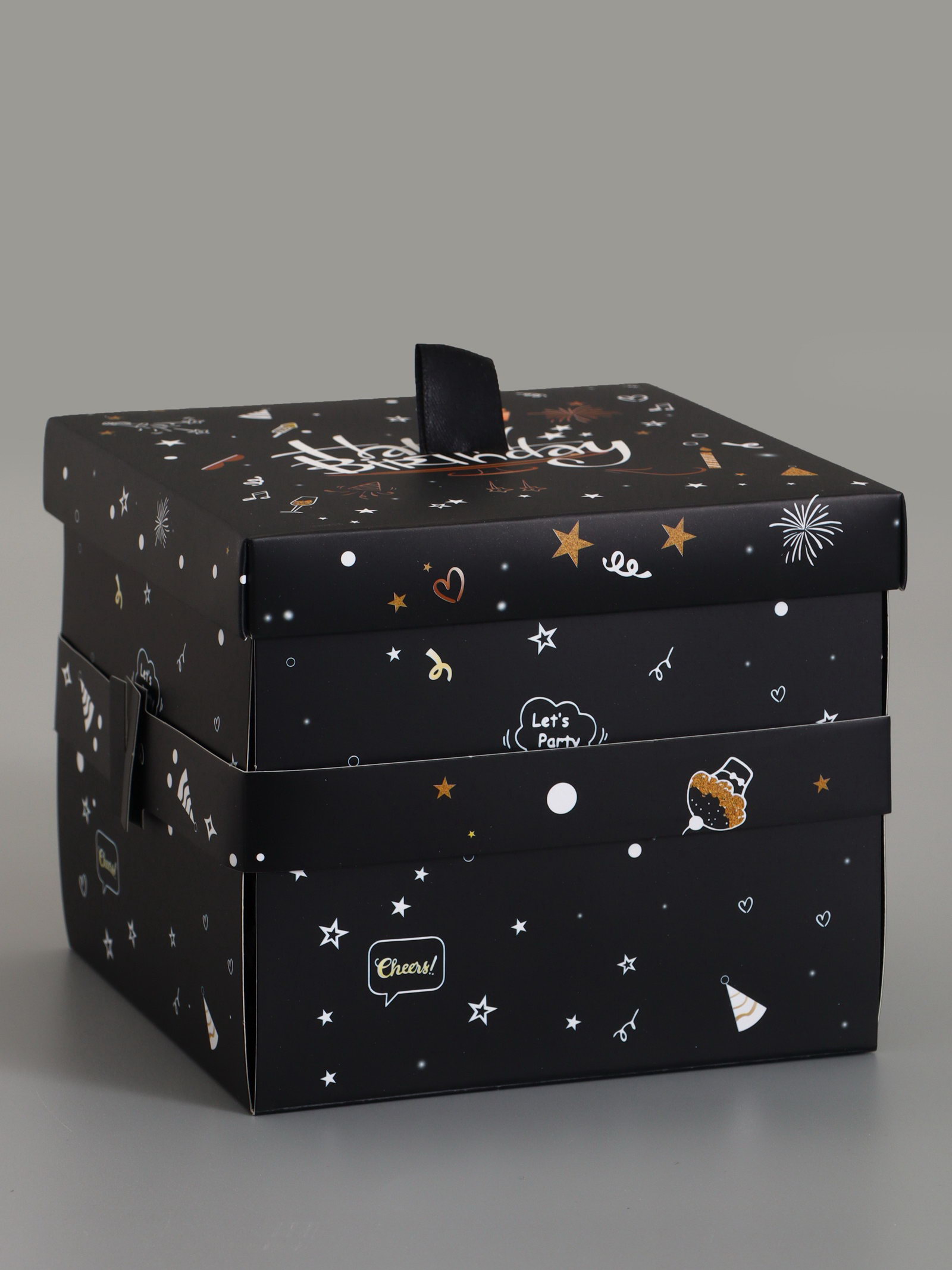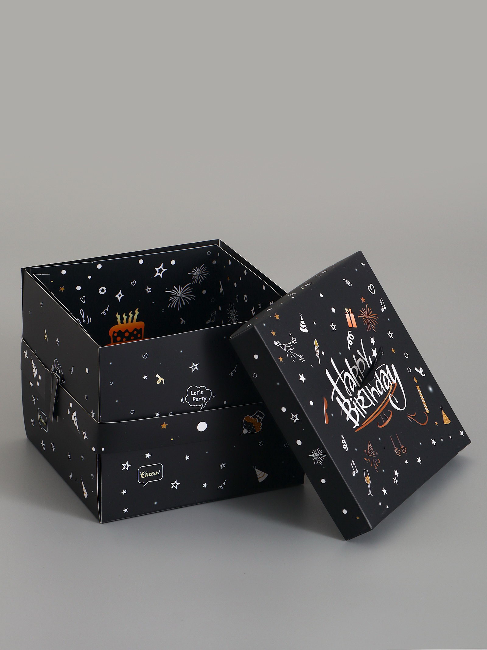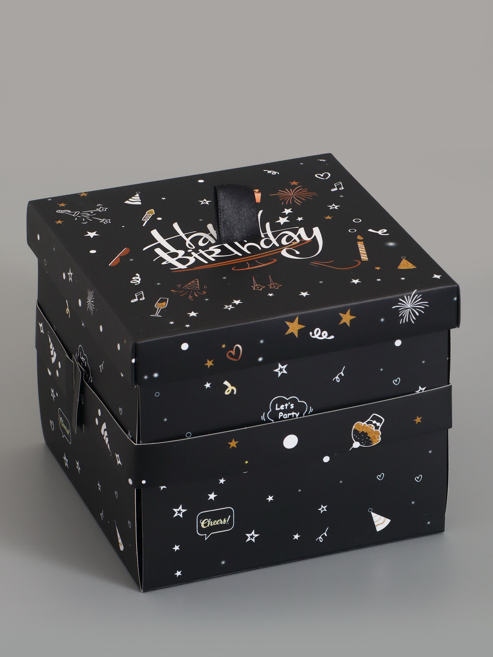 Коробка-сюрприз подарочная "Бабочки, День рождения" чёрная, с вылетающими бабочками, 15x14.8x12.5 см, 14.8x15x12.5 см., UPAK LAND, Китай