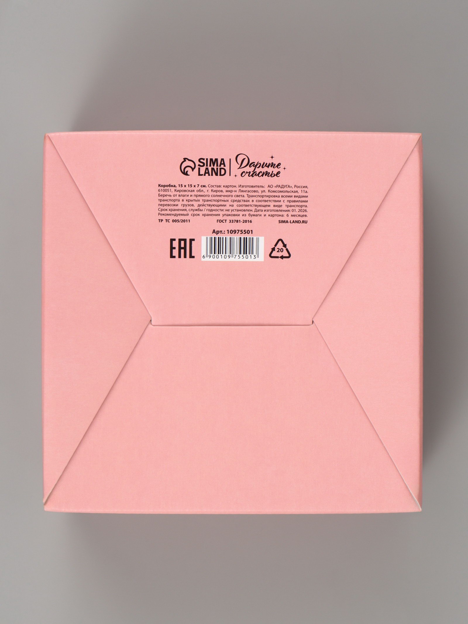 Тематика: Животный мир, Надписи, цифры, буквы Размер упаковки: 30 x 35 x 0.3 см. tnved: 4819200000 Дизайн: С рисунком, надписью Окошко: Нет Крышка-дно: Нет Тематика праздника: 14 Февраля Символ года: Нет Высота, см: 7 Вид: Складные коробки Ширина, см: 15 Допустимый вес вложения, г: 500 Размер: Малый (11-17 см) см Форма: Квадратная Длина, см: 15 Цвет: Розовый | ||