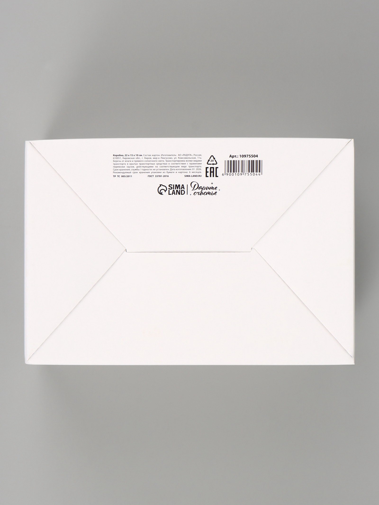 Размер упаковки: 37 x 39 x 0.3 см. tnved: 4819200000 Дизайн: С рисунком, надписью Окошко: Нет Крышка-дно: Нет Символ года: Нет Тематика праздника: 14 Февраля Вид: Складные коробки Высота, см: 10 Допустимый вес вложения, г: 750 Ширина, см: 15 Размер: Средний (18-24 см) см Форма: Прямоугольная Длина, см: 22 Тематика: Надписи, цифры, буквы Цвет: Белый | ||