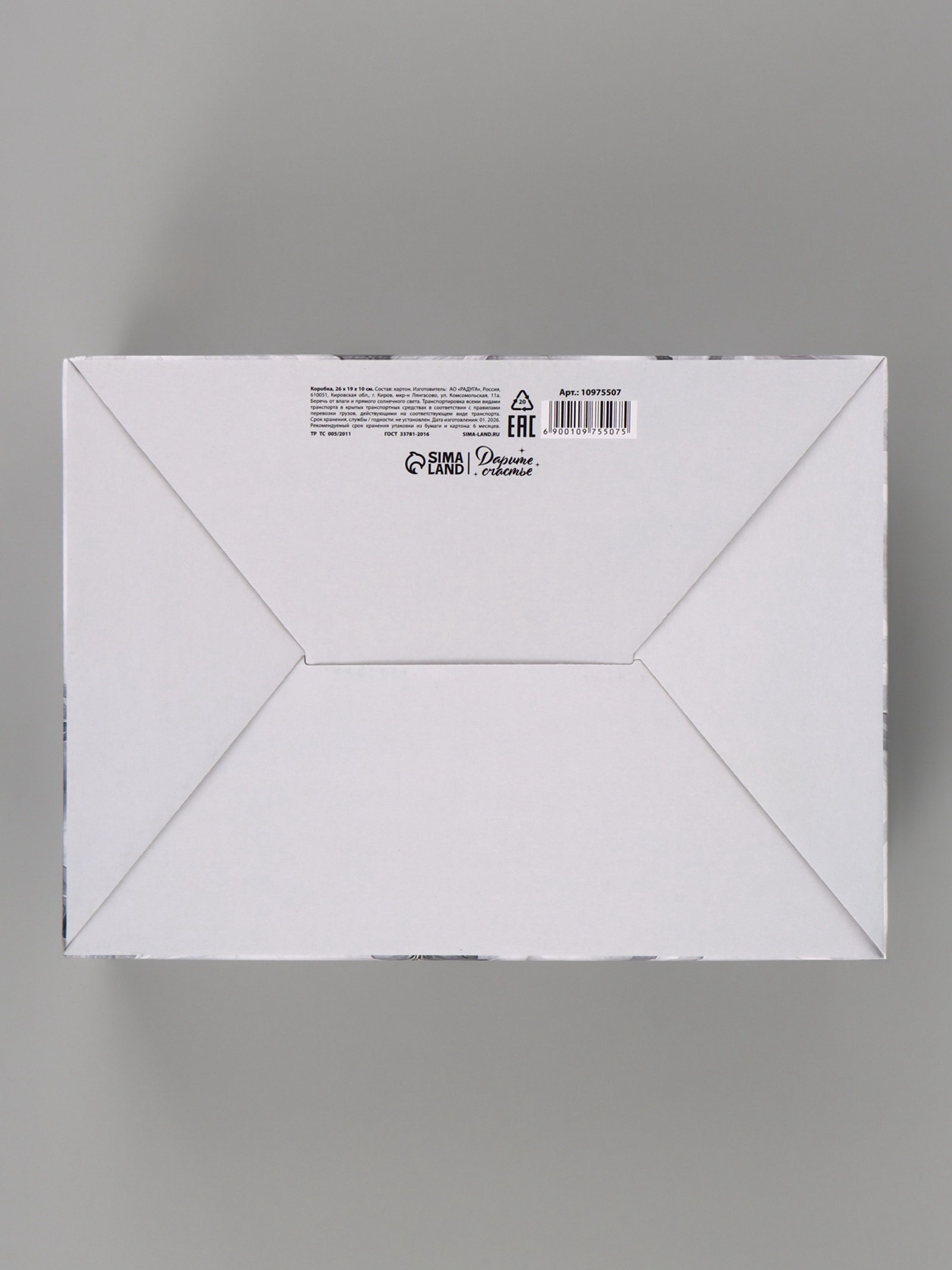 Тематика: Надписи, цифры, буквы, Цветочно-растительная Размер упаковки: 15.5 x 45 x 0.3 см. tnved: 4819200000 Дизайн: С рисунком, надписью Окошко: Нет Крышка-дно: Нет Тематика праздника: Универсальная тематика Символ года: Нет Вид: Складные коробки Длина, см: 26 Высота, см: 10 Ширина, см: 19 Допустимый вес вложения, г: 900 Размер: Большой (25-45 см) см Форма: Прямоугольная Цвет: Серый | ||