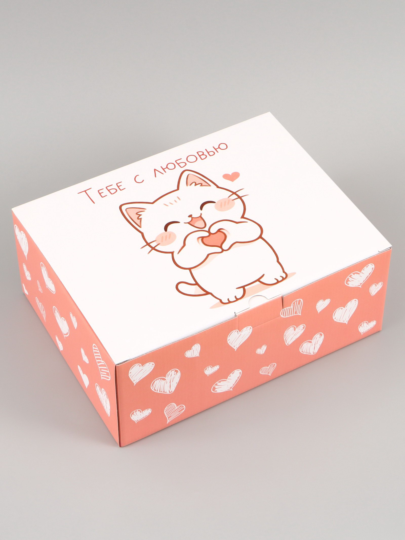 Коробка подарочная самосборная "Котик", 30x23x12 см, Дарите Счастье, Россия