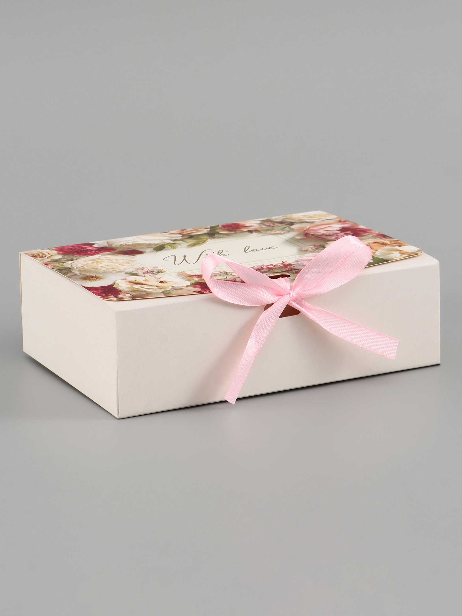 Коробка подарочная самосборная With love, 16.5x12x5 см, с лентой, Дарите Счастье, Россия