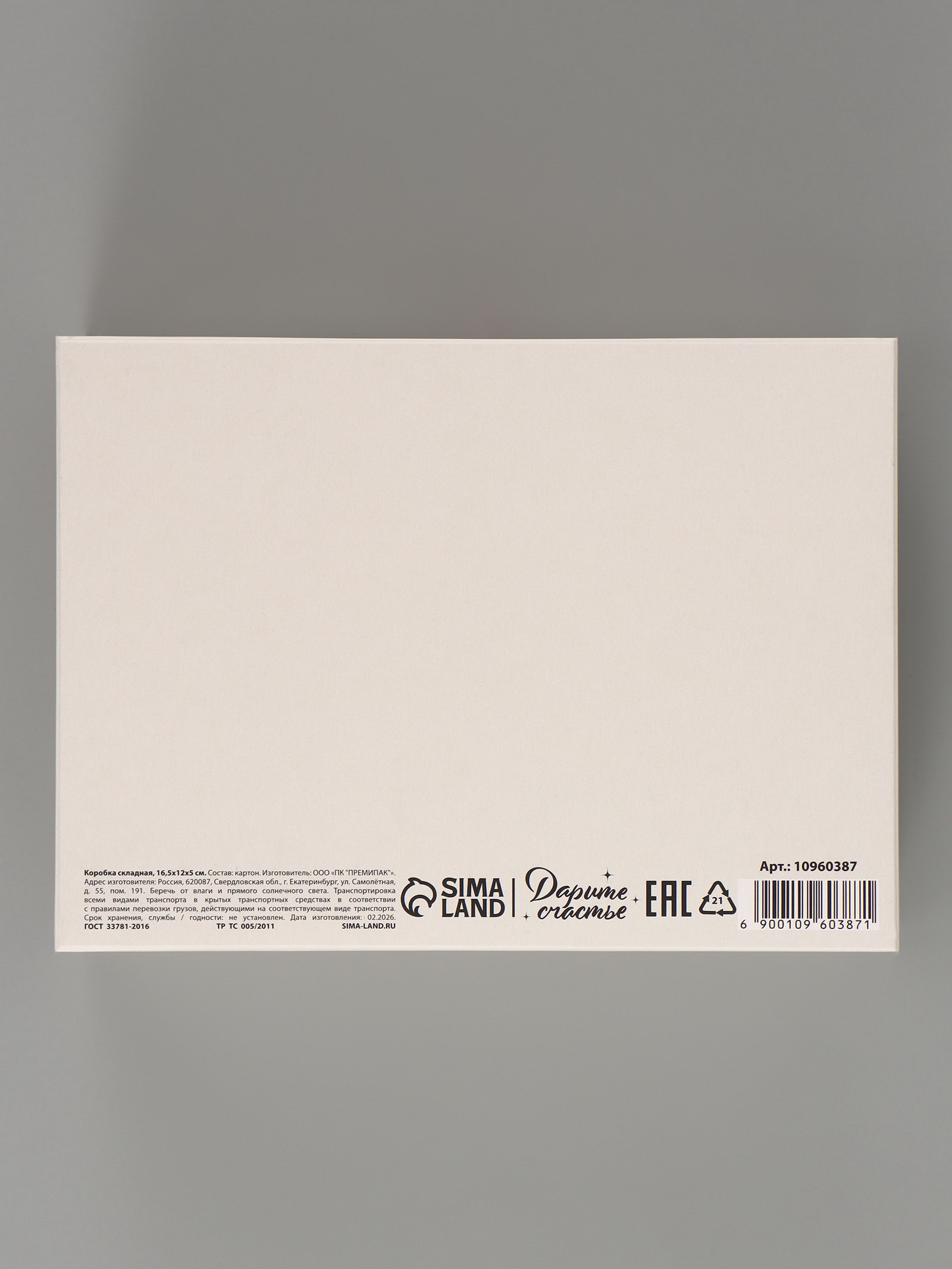 Вид: Прямоугольные, С лентой, Складные коробки Размер упаковки: 17 x 0.2 x 16.5 см. tnved: 4819200000 Плотность, г/?2: 250 Высота, см: 5 Крышка-дно: Нет Окошко: Нет Длина, см: 16.5 Дизайн: С рисунком, надписью Цвет: Бежевый Ширина, см: 12 Допустимый вес вложения, г: 200 Форма: Прямоугольная Символ года: Нет Размер: Малый (11-17 см) см Тематика: Цветочно-растительная Тематика праздника: Универсальная тематика | ||