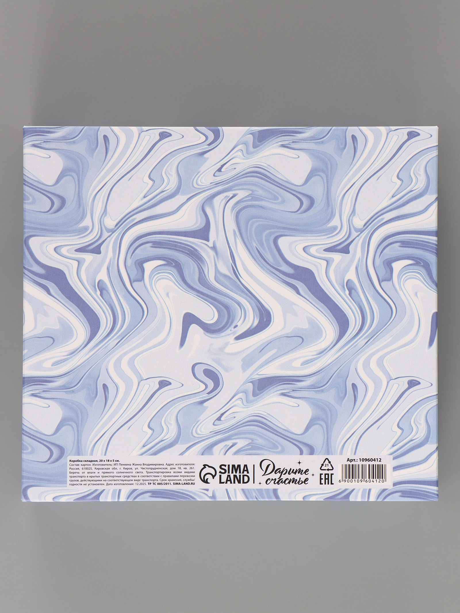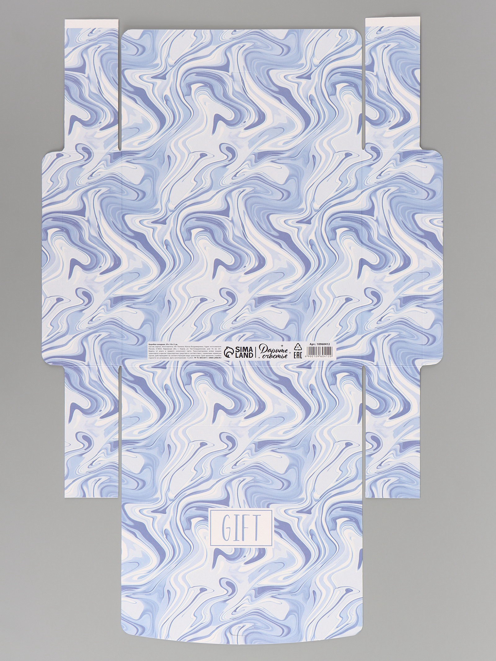 Вид: Прямоугольные, С лентой, Складные коробки Размер упаковки: 28 x 0.2 x 20 см. tnved: 4819200000 Символ года: Нет Тематика праздника: Универсальная тематика Дизайн: С рисунком, надписью Высота, см: 5 Плотность, г/?2: 250 Длина, см: 20 Цвет: Синий Форма: Прямоугольная Окошко: Нет Допустимый вес вложения, г: 350 Ширина, см: 18 Крышка-дно: Нет Размер: Средний (18-24 см) см Тематика: Мрамор | ||