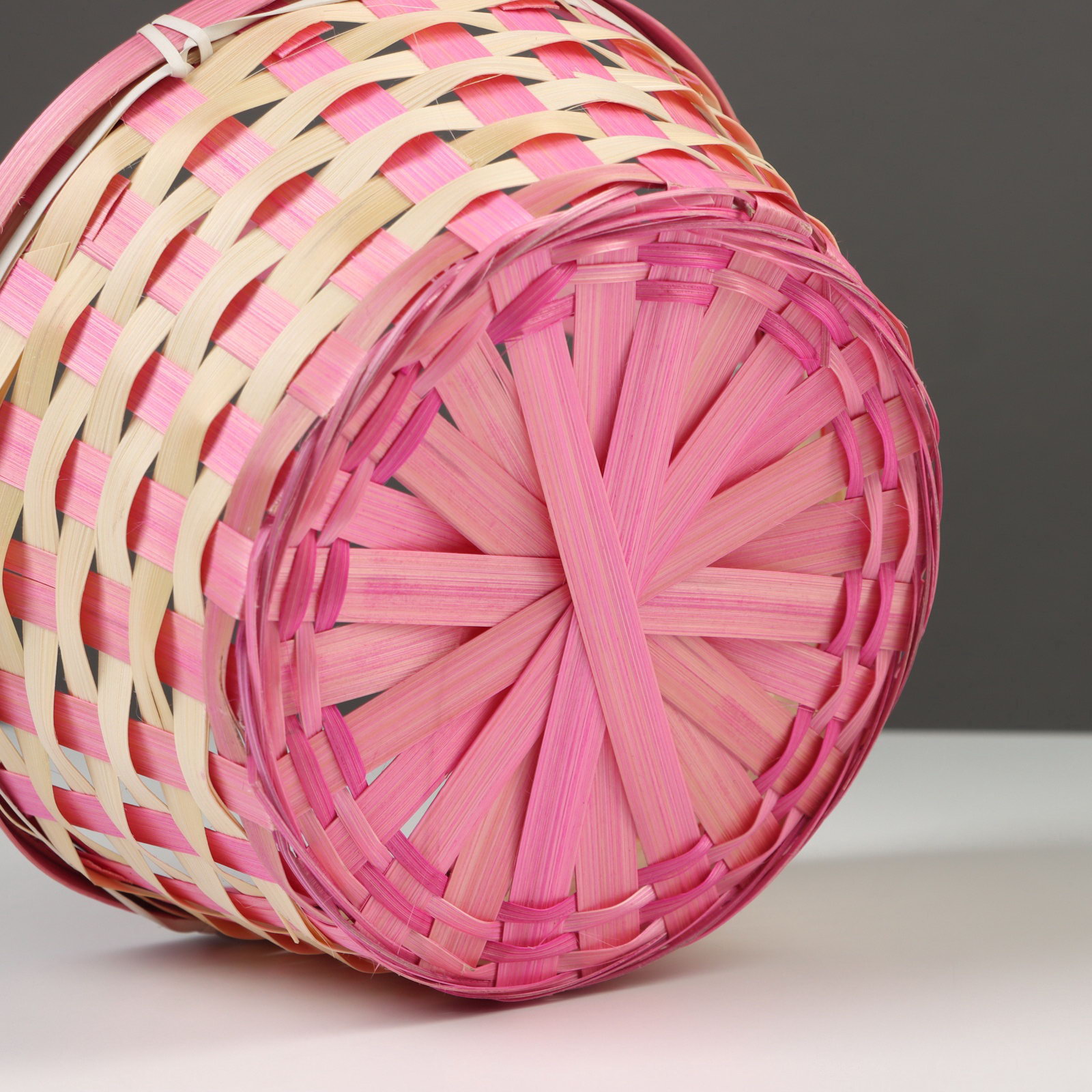Корзина плетёная, бамбук, 21x21x10/24 см, розовая, 21x21x24 см., Китай