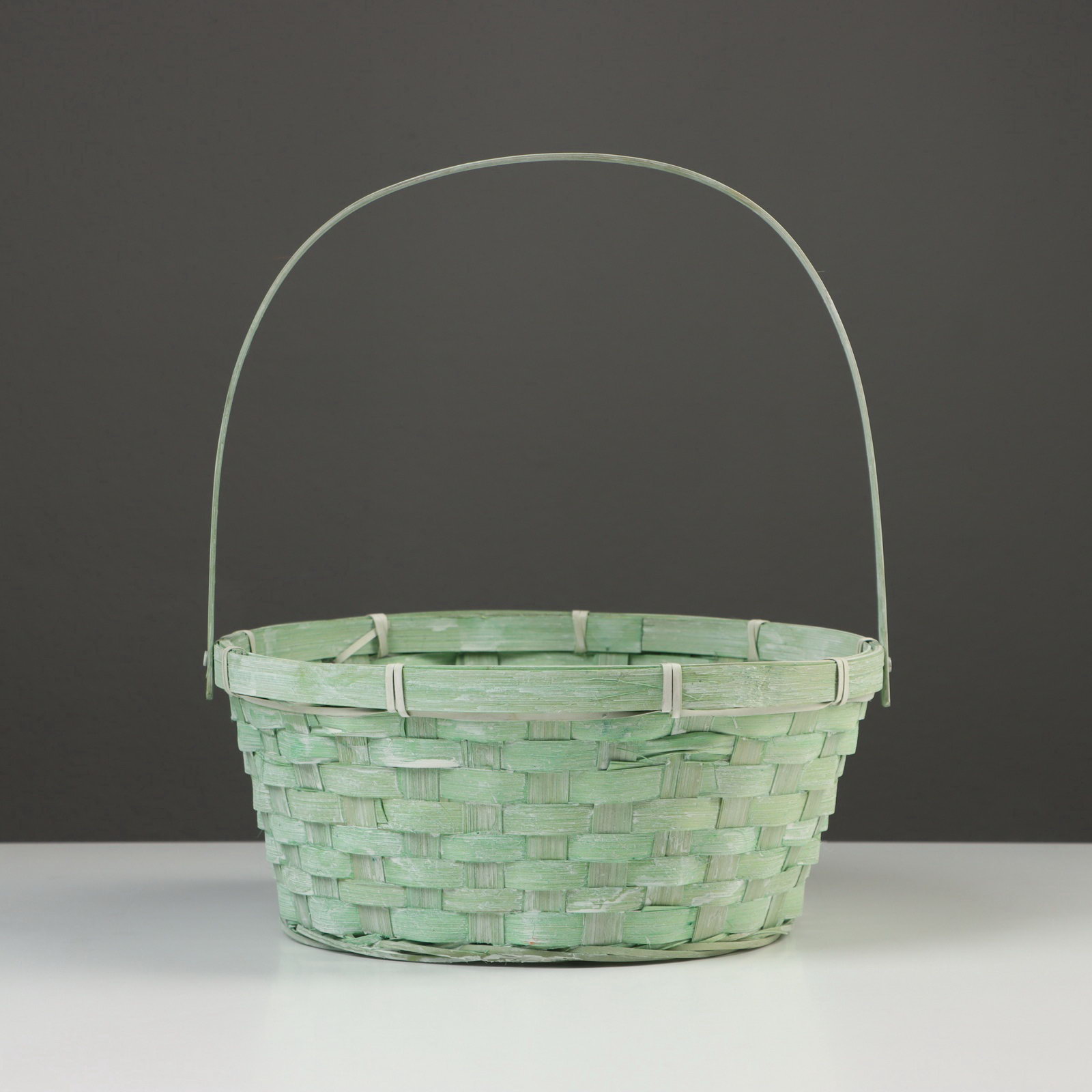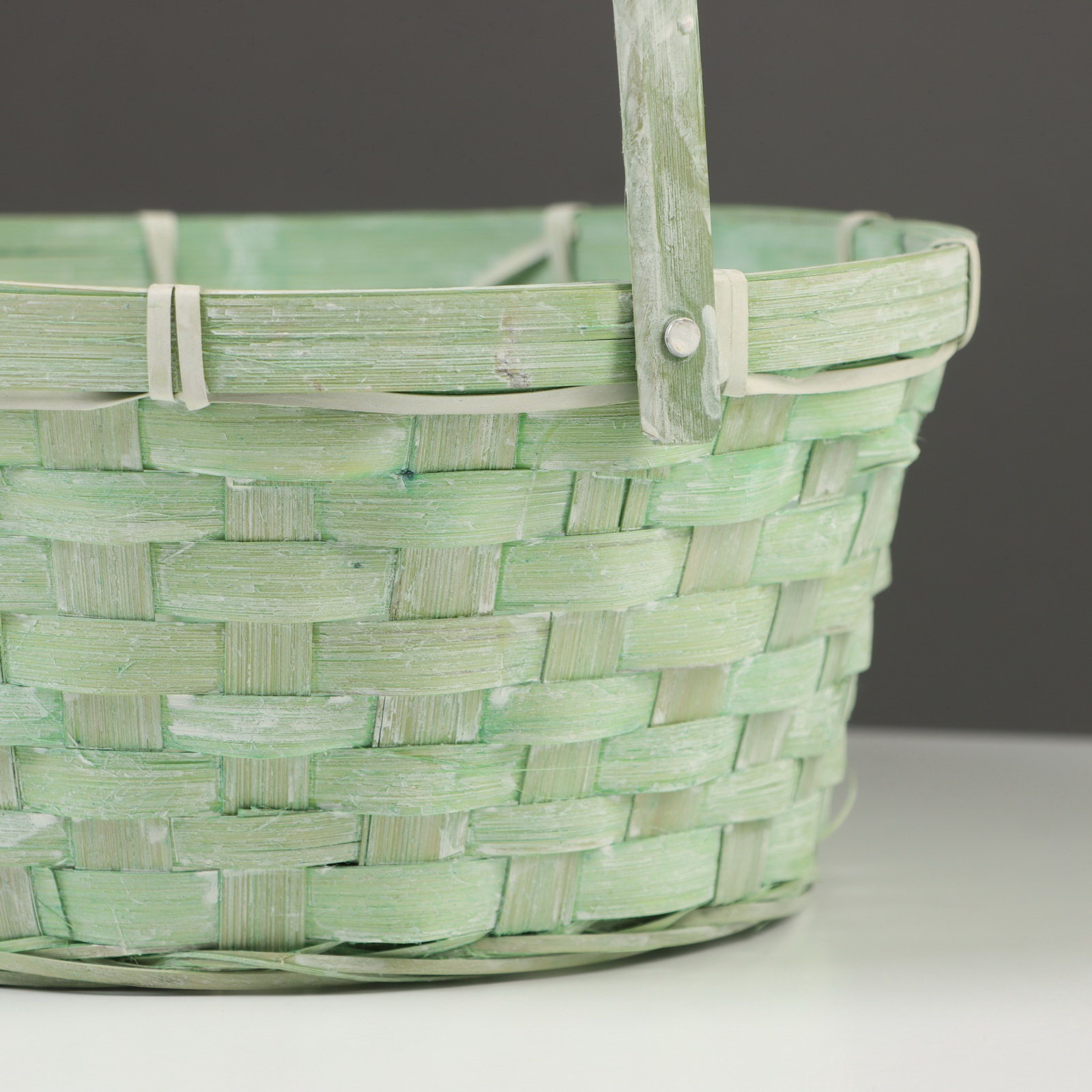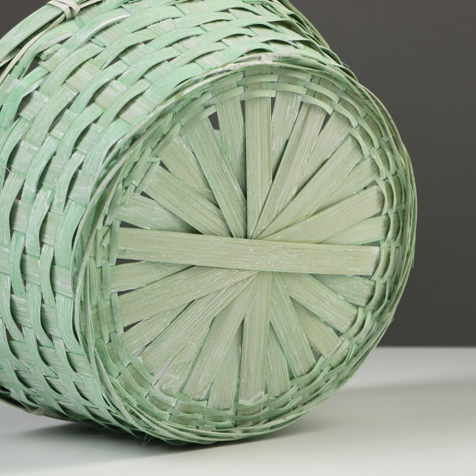 Корзина плетёная для хранения, 26x26x12 см, ручка h=18 см, бамбук, зелёная, Китай