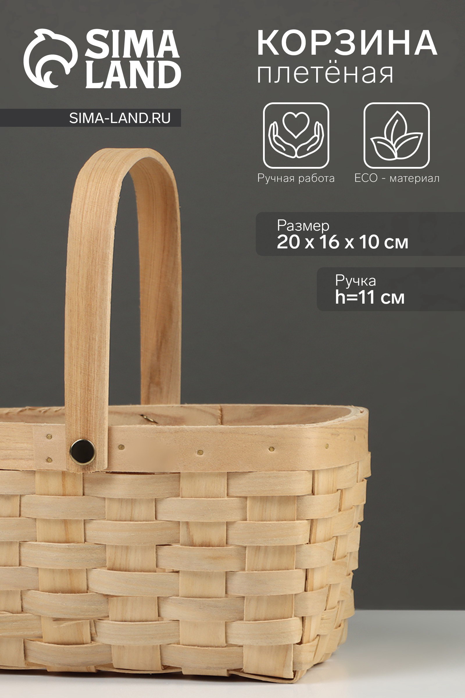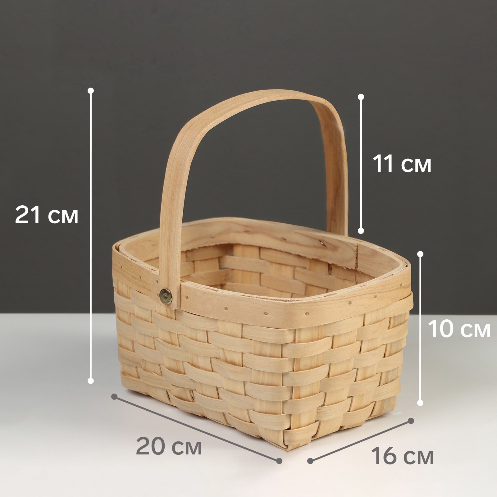 Корзина плетёная, 20x16x10 см, ручка h=11 см, ива, натуральный цвет, 20x20x35 см., Greengo, Китай