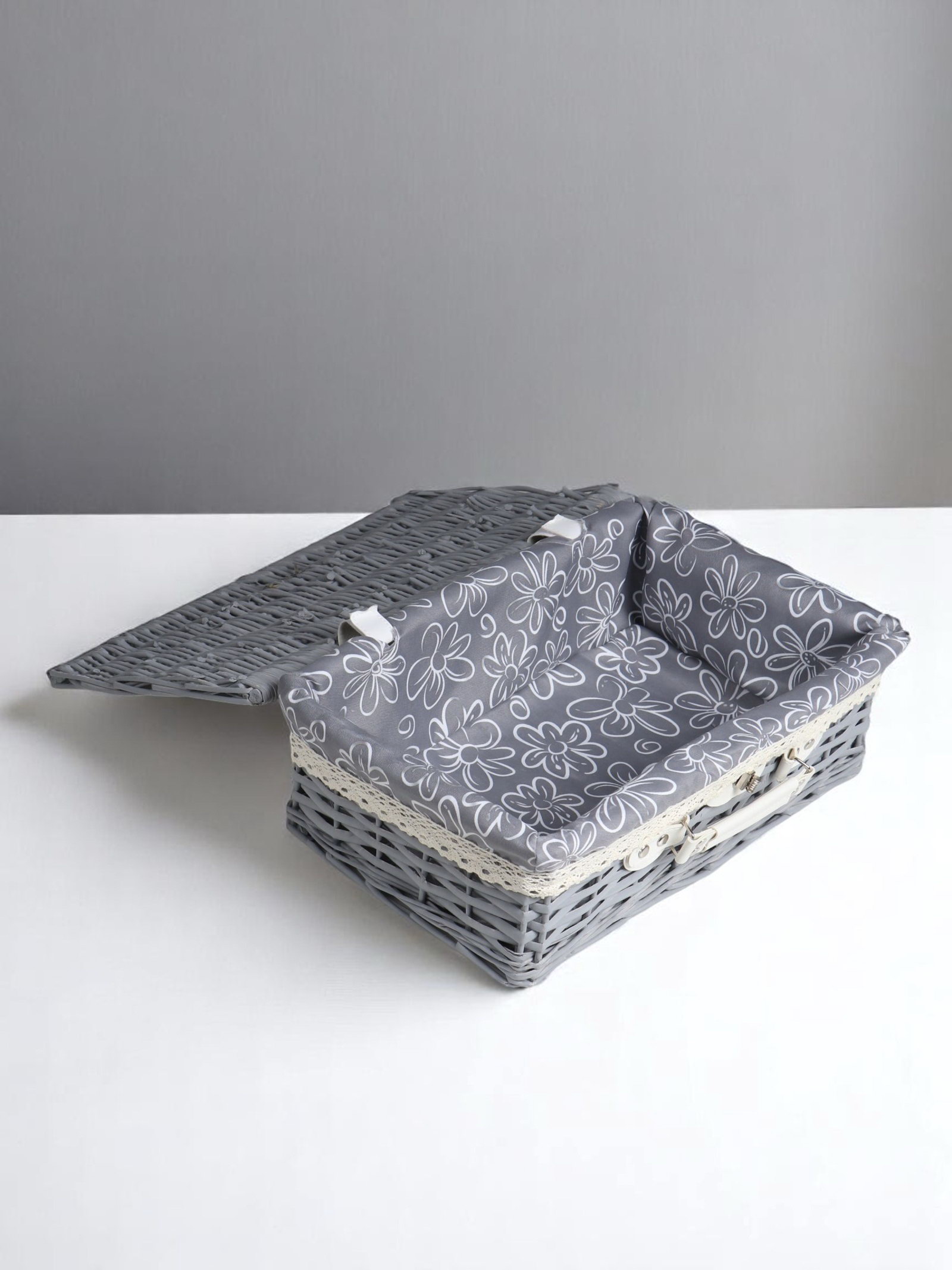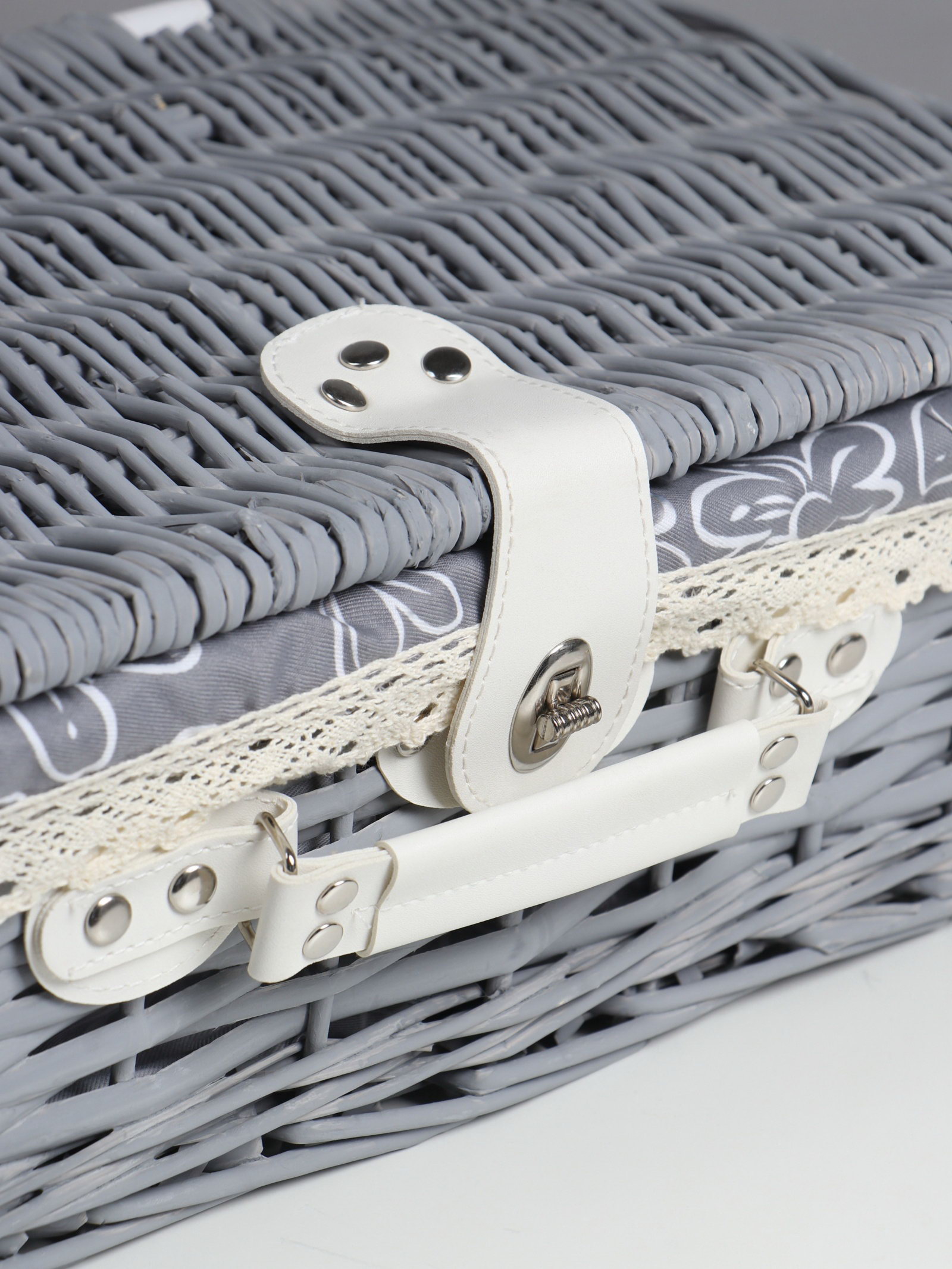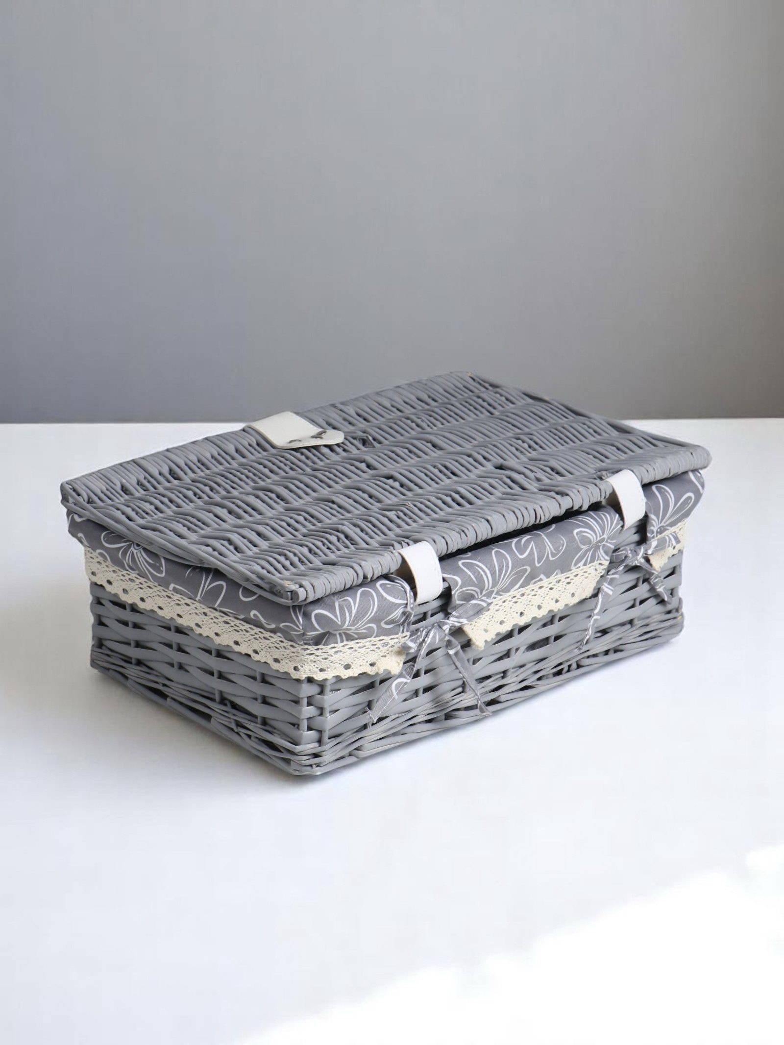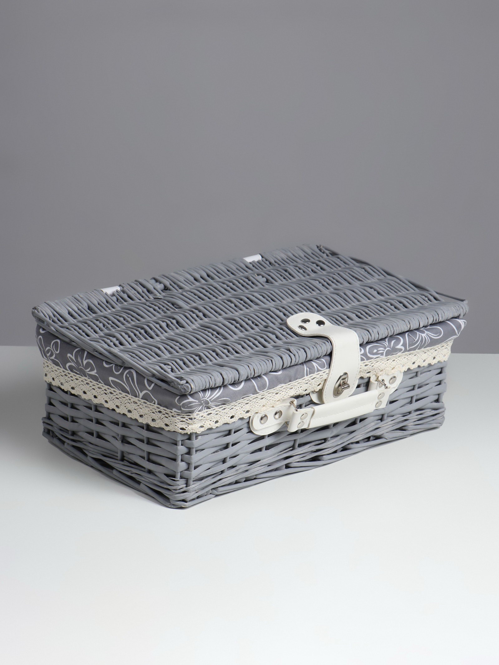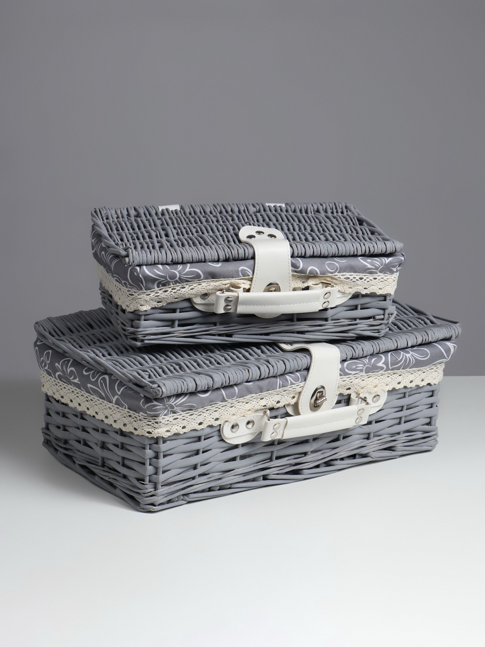 Корзина - чемодан плетёная для хранения, лоза, текстиль, экокожа, серая, набор 2 шт., Россия